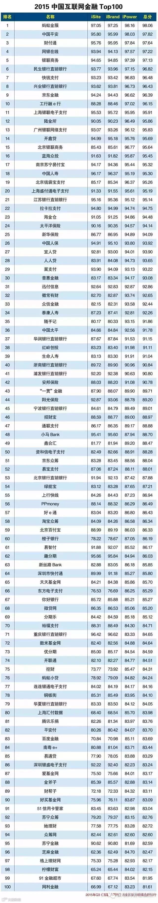 近日,由中科院《互联网周刊》发布的“2015年中国互联网金融排行榜TOP100”榜中,
