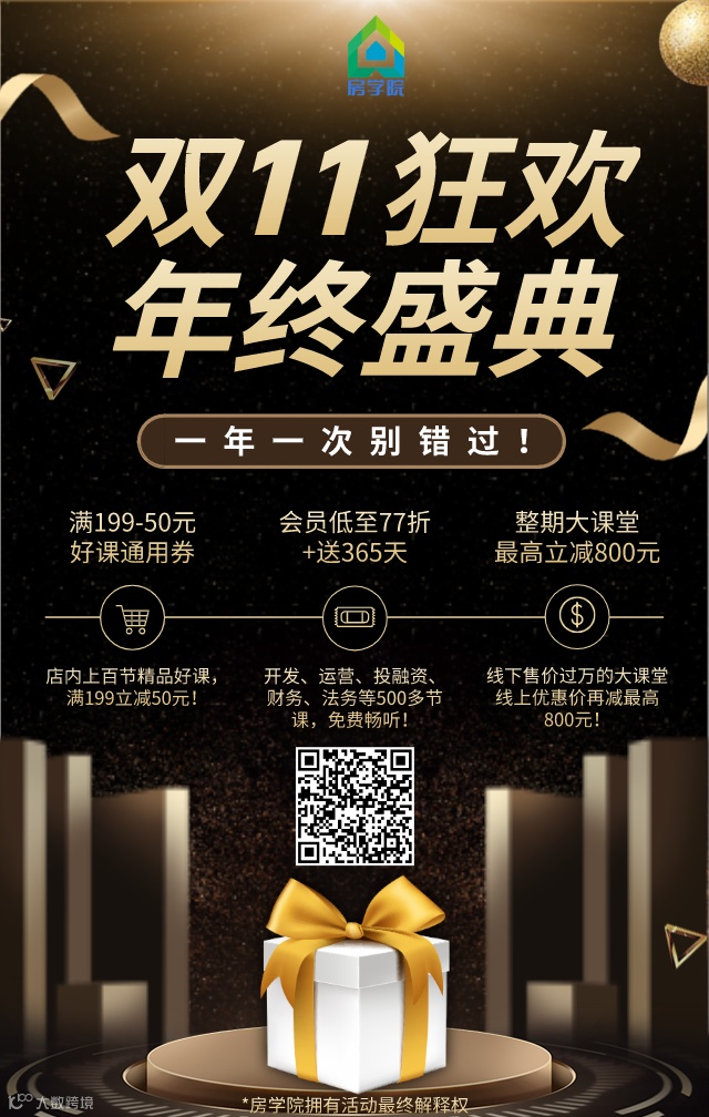 前段时间已经有不少地产朋友问我们,房学院的线上课程有没有双十一活动,在大家的支持下,我们的双十一活动已经悄悄上线一段时间了。