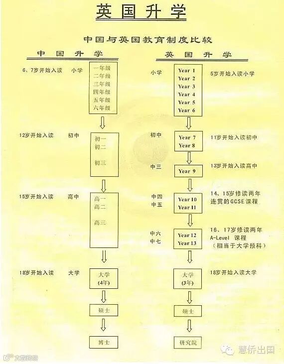 中英教育学制的差别使学生在年龄和学级程度上无法一一对应,为了让中国的学生更好地与英国体制衔接,我们特将两国的教育体制做出对比: