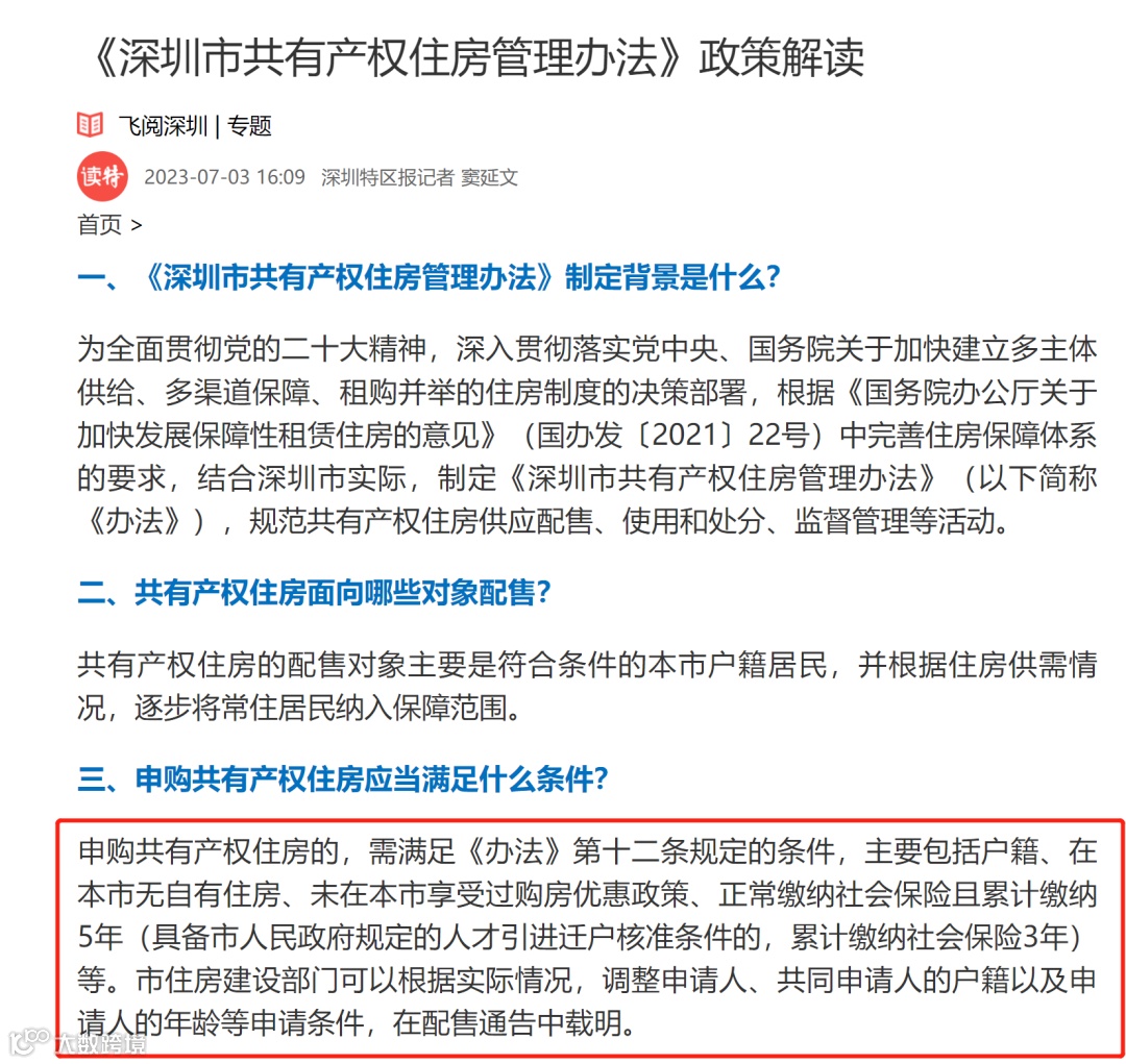 据深圳住建局官网,今年1月17日,深圳住建局联合司法局发布《深圳市共有产权住房管理办法(征求意见稿)》等4份文件。