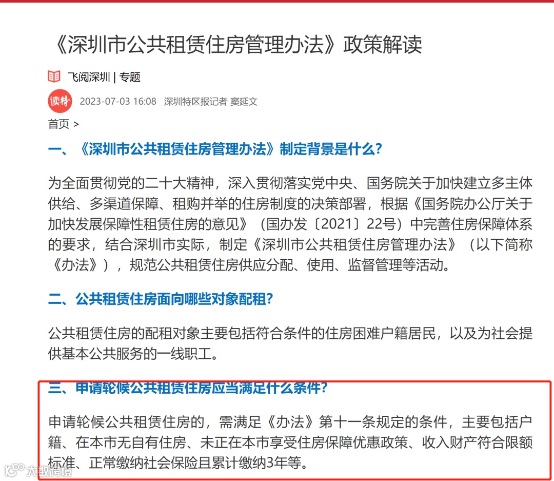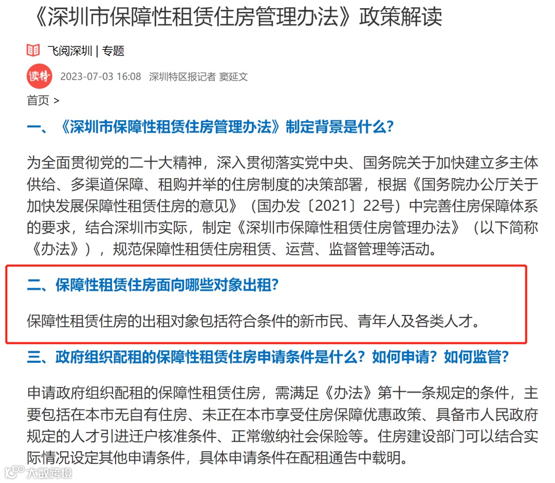 7月3日,深圳市住房和建设局网站连发四项管理办法,分别对公共租赁住房、保障性租赁住房、共有产权住房三类住房的保障对象、申请条件、供应分配方式、租售价格标准、用地保障、建设筹集主体和渠道、建设标准、监督管理等进行了规范。