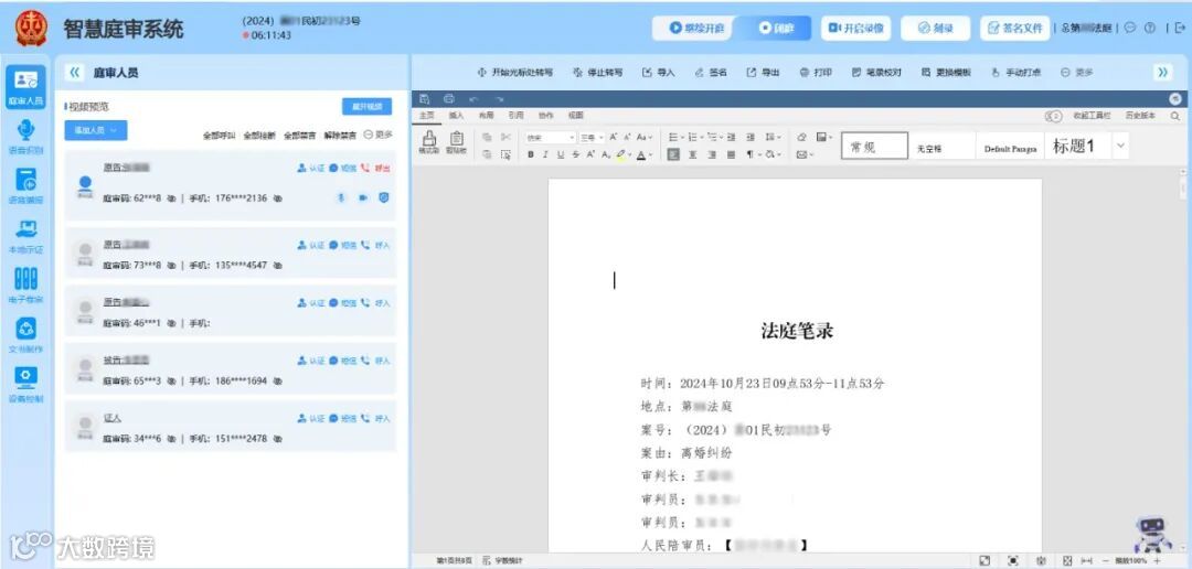 按照《全国法院“一张网”的接口对接能力清单指引》的要求,已成功对接“一张网”中的用户中心、案件中心、卷宗实体中心以及音视频能力平台等接口。涵盖了从办公办案平台跳转至庭审界面、庭审管理(开庭、休庭及闭庭)、查阅案卷页面以及向“一张网”回写庭审笔录及庭审视频等多项功能,有力确保了智慧法庭系统的稳定运行。