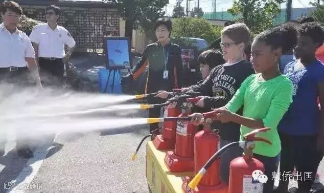 在美国大多数房子都是木头建造的,包括我们学校的教学大楼也有很多地方是以木头为材料修建的。所以,“防火求生”也是一门必修课。