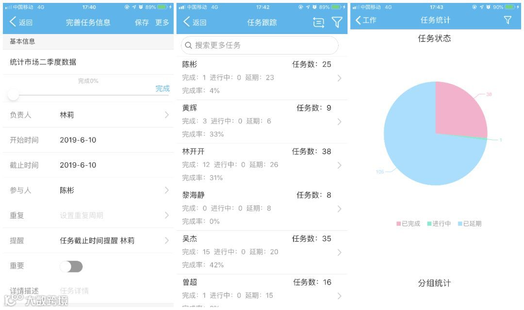 任务管理,除了任务分解和过程跟踪,还有任务统计和任务评价,让任务协同更具深度。