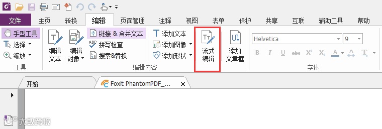 1. 在福昕高级PDF编辑器企业版中点击编辑菜单>编辑内容>流式编辑,接着会弹出一个流式编辑提示窗口,提示框中对流式编辑模式下的优点和注意事项进行了说明。