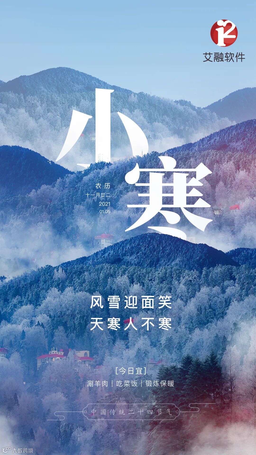 导读:2021年1月5日,今天是中国传统二十四节气之小寒。风雪人面笑,天寒人不寒!艾融软件祝新老朋友小寒安康!