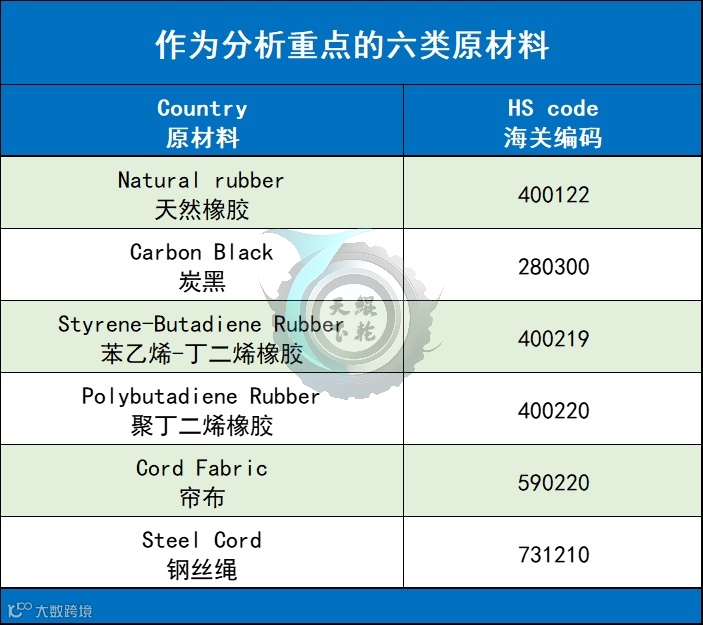 第三國替代,在欧盟的轮胎双反调查中具有基础性影响,如果选取了一个高成本、高费用的替代國,将直接导致高税率。此外,已知明确六类原材料作为分析重点要素。
