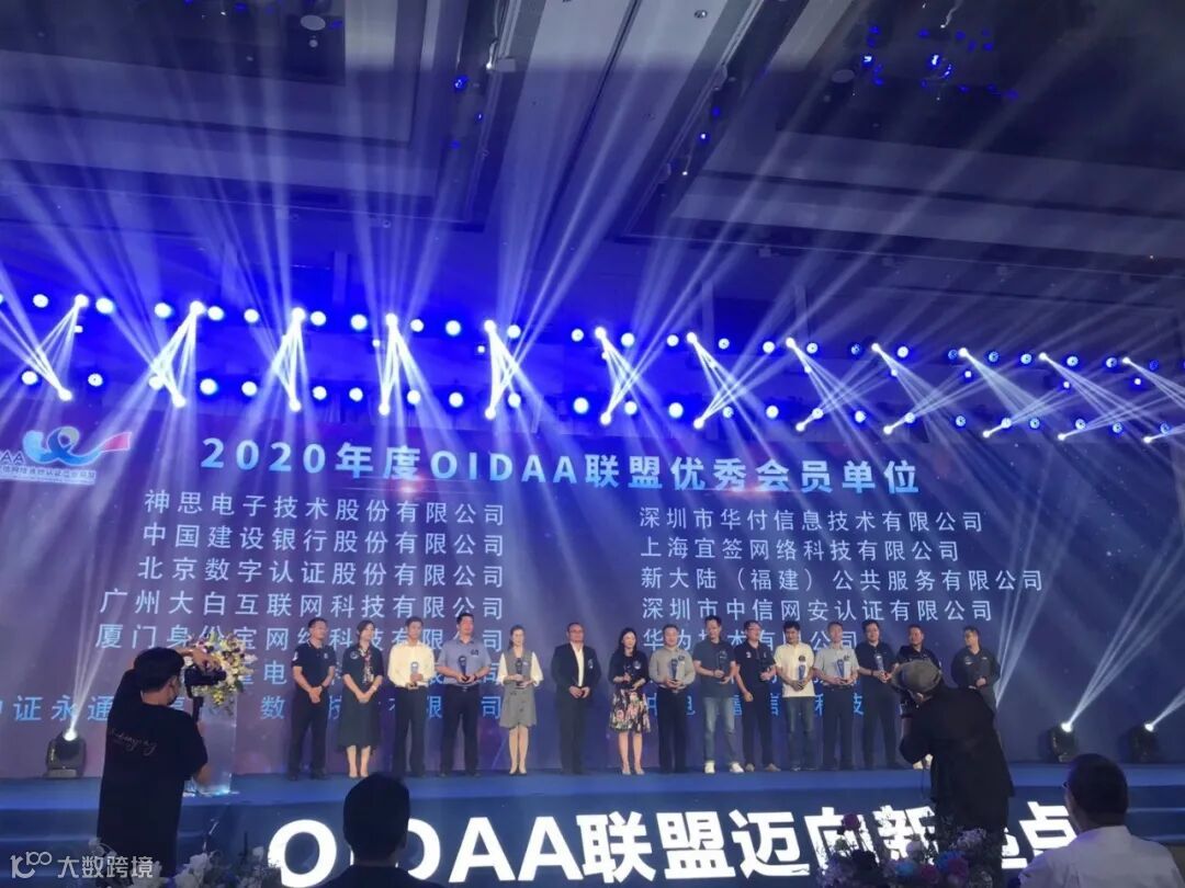 2020年10月11日,第三届数字中国建设峰会暨2020年度OIDAA联盟会员大会在美丽的榕城福州召开,艾融软件子公司上海宜签网络科技有限公司应邀参加了隆重的表彰大会。会上,上海宜签网络科技有限公司喜获“2020年度OIDAA联盟优秀会员单位”和“2020年度最佳行业服务合作伙伴奖”两座奖杯,是金融行业唯一同时获得这两项殊荣的CTID平台服务推广商。