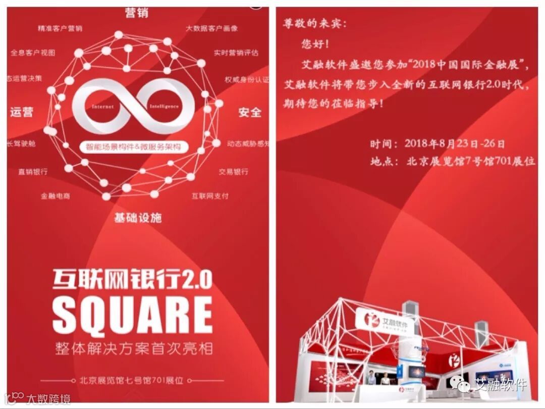 本次展会,艾融软件展区位于7号馆701展位, 届时我司将携互联网银行2.0SQUARE解决方案亮相本次展会。我们诚挚地邀请您莅临我司展位参观指导!