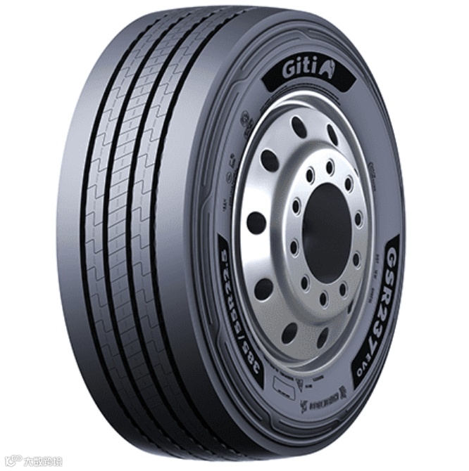 另外,佳通轮胎还推出GSR237EVO卡车花纹系列新增了385/55R22.5和385/65R22.5两个规格。EVO系列名称代表着通过显著改善滚动阻力系数来实现节能解决方案。这两款轮胎转为中长途综合道路开发的系列产品,滚动阻力系数(RRC)达到标签B级,对区域运输转向轮轮胎产品而言较为出色。同时,新胎面胶配方使其行驶里程相较于佳通 GSR259系列中相同规格产品提升了近20%。规格为385/55R22.5的佳通GSR237 EVO轮胎还拥有更高的162的负荷指数以满足新一代卡车的需求。