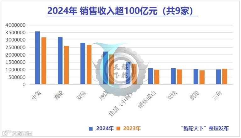 超100亿元5家:佳通(中国)149.31、浦林成山109.85、双钱109.53、贵轮103.62、三角101.56;