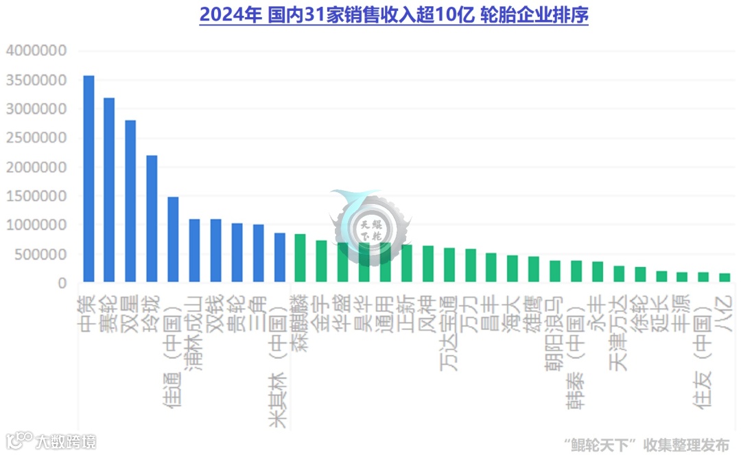 “鲲轮天下”依据各渠道发布提供的数据、收集整理统计了国内31家(含国际品牌国内销售)销售收入过10亿元的轮胎橡胶企业。