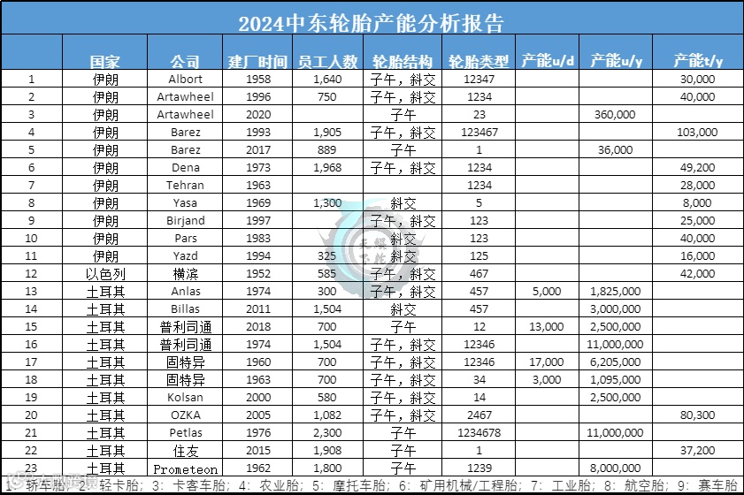2023年阿联酋制造业在GDP中占比13%,较2021年的10.37%有所提升,化学品、橡胶、塑料、金属和食品生产等是阿联酋制造业的重要构成,政府后续政策也将继续倾向于这些行业,这为轮胎制造产业创造了有利的政策环境,推动其迎来更为蓬勃的发展。