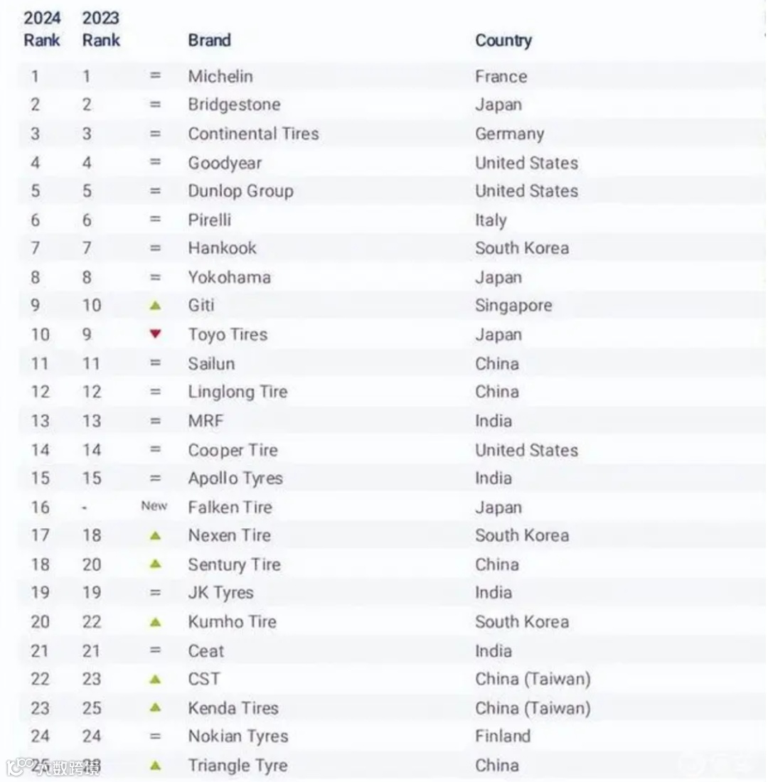 品牌估值咨询公司Brand Finance发布了2024年度全球轮胎品牌价值25强榜单。芬兰诺记轮胎位列第24位,成为芬兰唯一上榜的轮胎品牌。