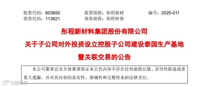 [2] 新闻端:彤程新材宣布泰国投资计划