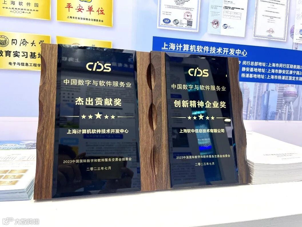 2023年7月7日,作为国内唯一的数字和软件服务领域国家级展会---2023年中国国际数字和软件服务交易会继续在大连盛大进行。上海计算机软件技术开发中心、上海软中信息技术有限公司凭借多年以来在信息技术领域的扎实技术积累、卓越的服务品质、持续不断的创新能力,获得大会高度认可并从众多参选的行业企业中脱颖而出,分别获颁“中国数字与软件服务业杰出贡献奖”、“中国数字与软件服务业创新精神企业奖”。