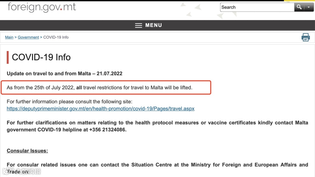 从2022年7月25日起所有前往马耳他的旅行限制都将取消。