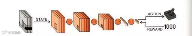 我们对基于价值函数的DRL算法的讨论,从深度Q网络(如下图所示)开始,该算法在经典Atari 2600视频游戏中获得了普遍的成功,性能堪比专业的视频游戏测试人员。DQN的输入是游戏的四个灰度帧,随着时间的推移连接,最初由几个卷积层处理,以便提取时空特征,例如“Pong”或“Breakout”中球的移动。最终,来自卷积层的特征图由几个全连接的层来处理,这更多隐含编码地动作的效果。这与使用固定预处理步骤的更传统的控制器形成对照,因此,它们不能适应其对学习信号的状态处理。