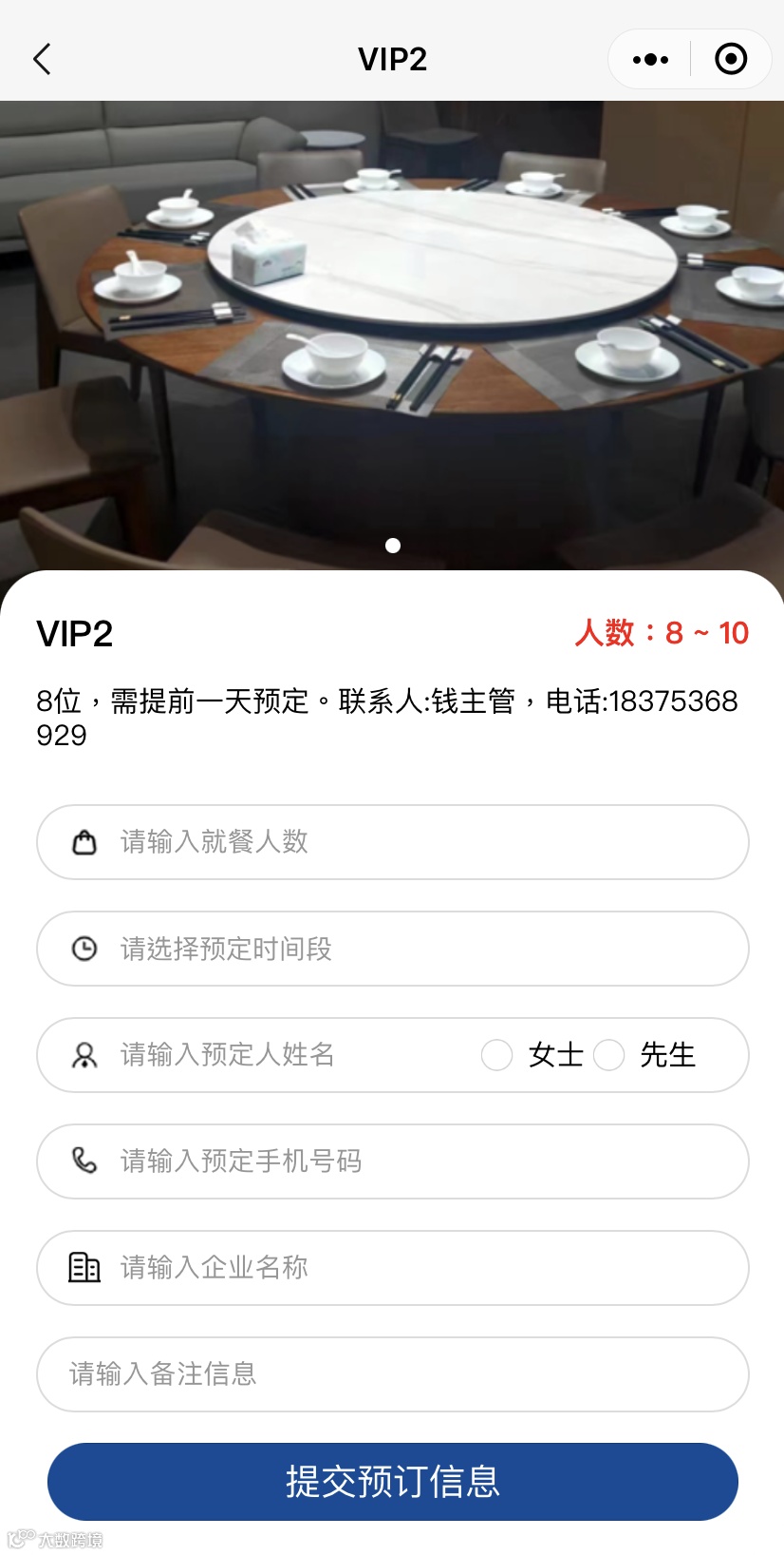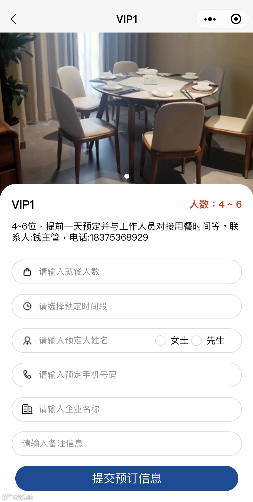 此外,为满足园区企业商务宴请、餐饮招待需求,食堂VIP包间预订正式开放,现设有4-6位、8位、14-16位三个标准包间。请提前一天预订,食堂审核后即预订成功,欢迎园区企业预订体验!联系人:钱主管18375368929。