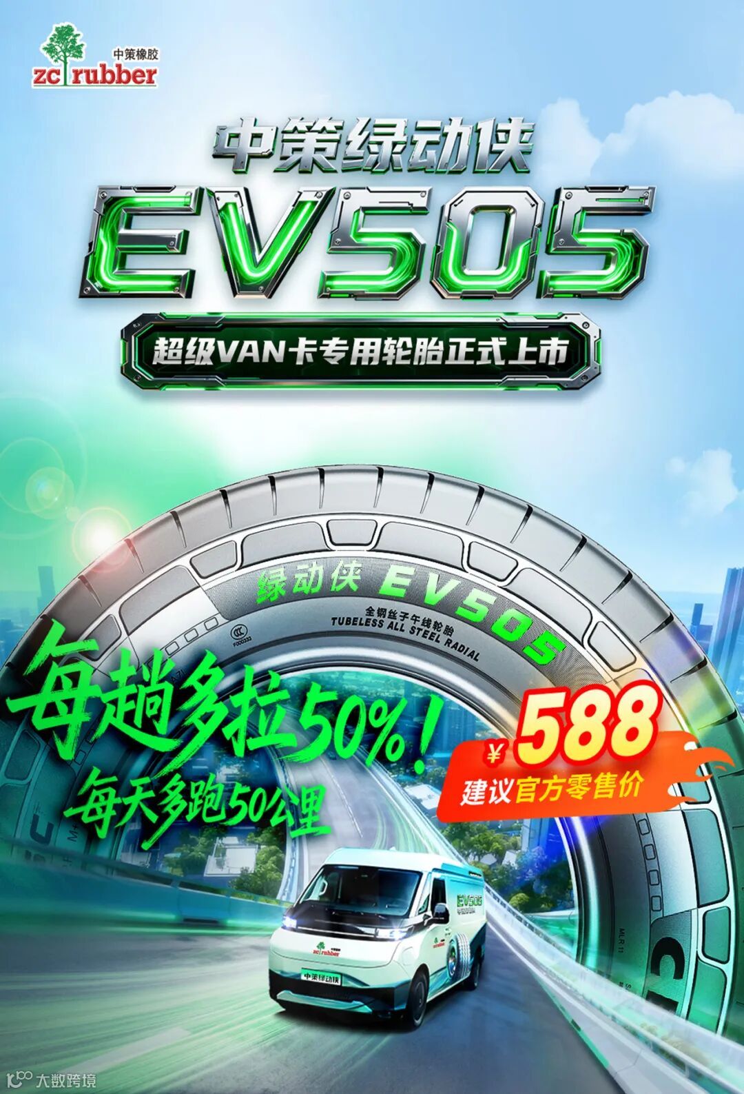 11月27日,一个历史性的时刻。中策橡胶的领航者们与来自研发、生产、市场的核心团队齐聚一堂,他们与全网超百万网友共同见证了一个里程碑事件:全球首款超级VAN卡专用轮胎——绿动侠EV505,正式宣告上市。对于EV505来说,它不只是一条轮胎,而是经过多轮战场检验,从材料科学的突破,到智能制造的落地,再到对用户痛点的深刻洞察与关怀的产品。