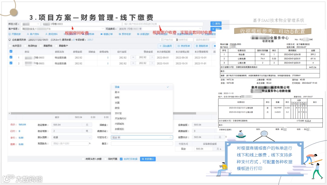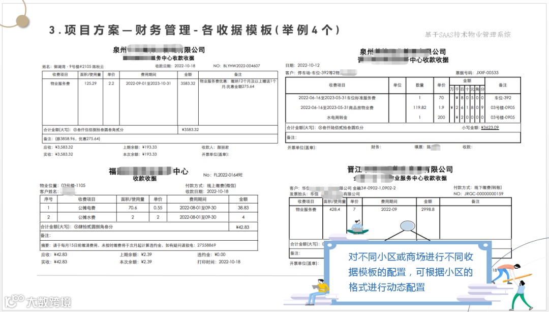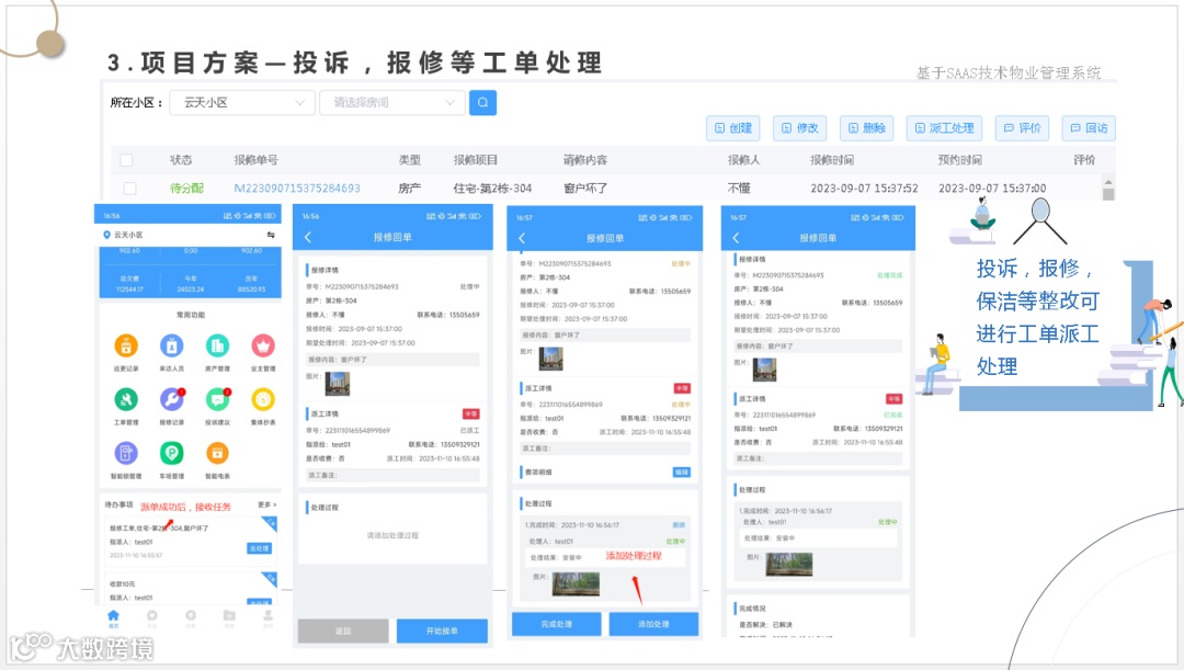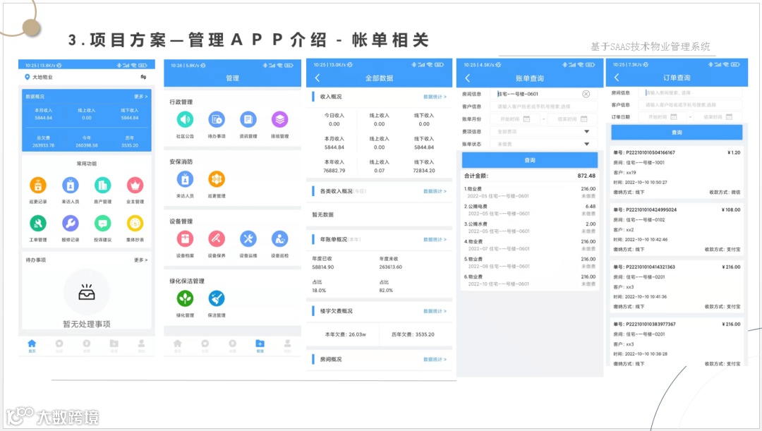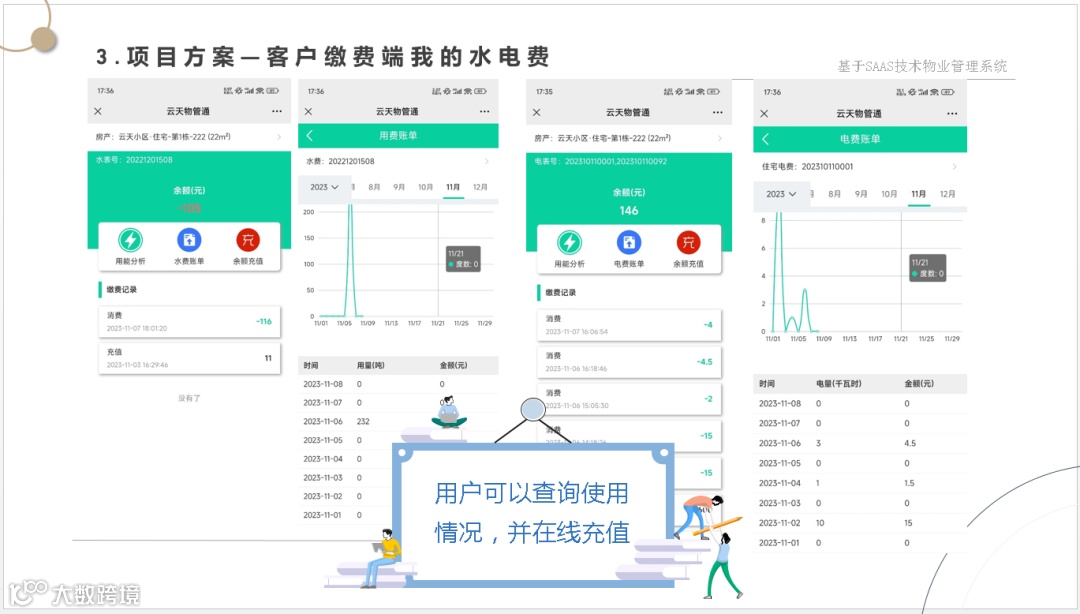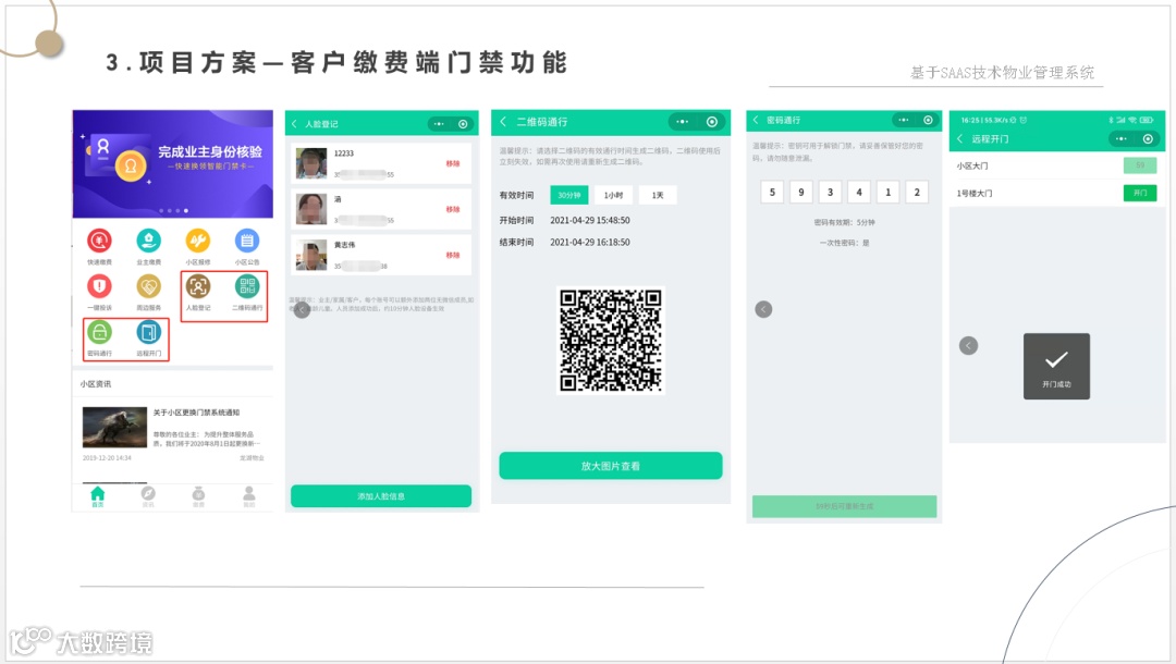 让管理方一套系统解决物业管理、财务管理、集成各种缴费方式、智能水电表系统、智能门锁系统、智能门禁系统、2轮、4轮电动车充电系统、停车管理系统、监控系统等软、硬件集成为一体的数字物业综合服务管理平台。