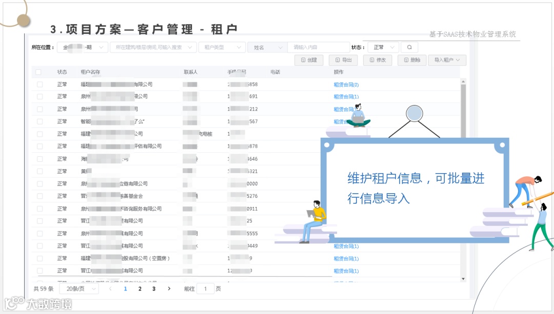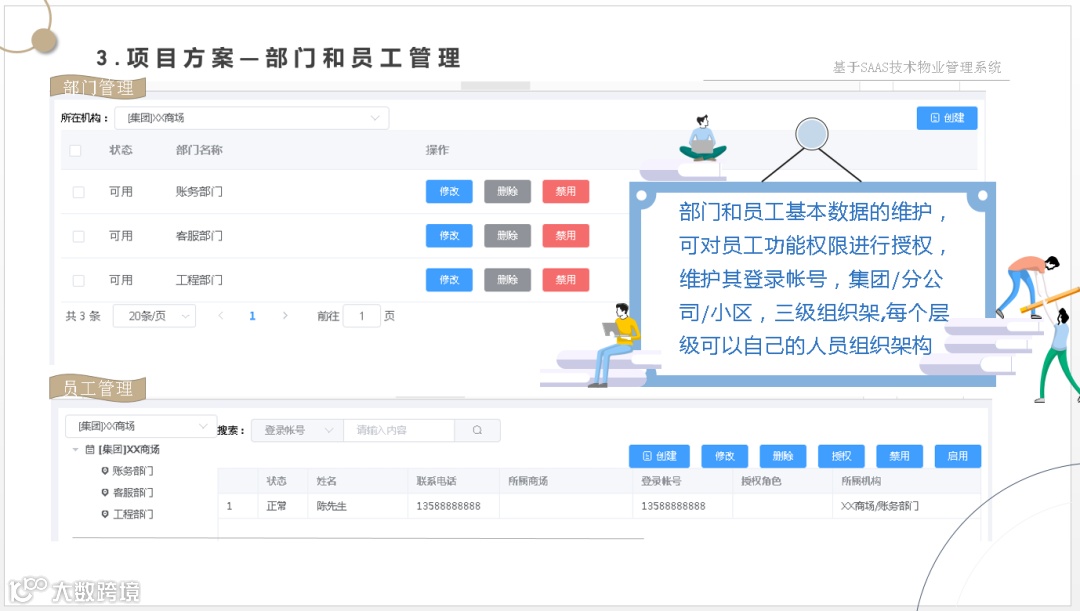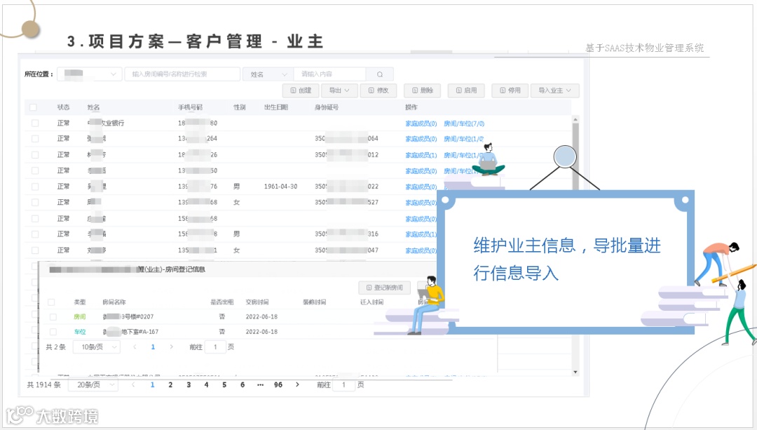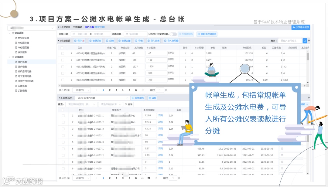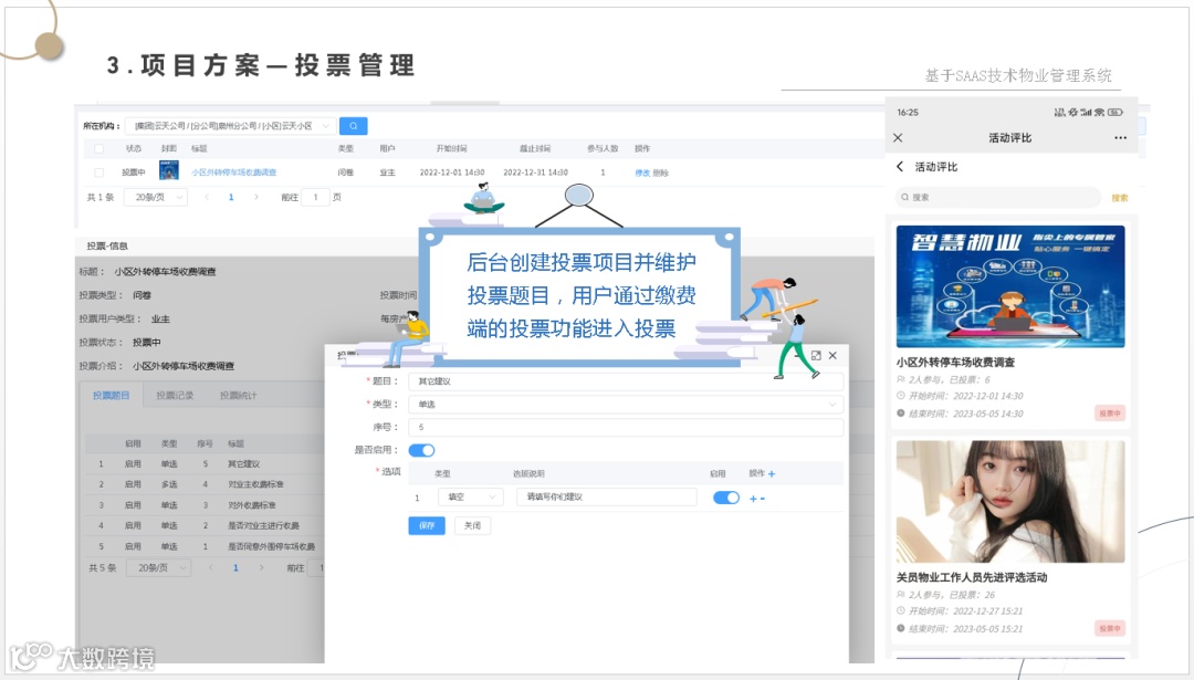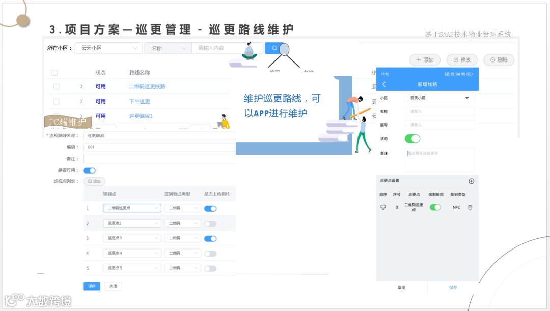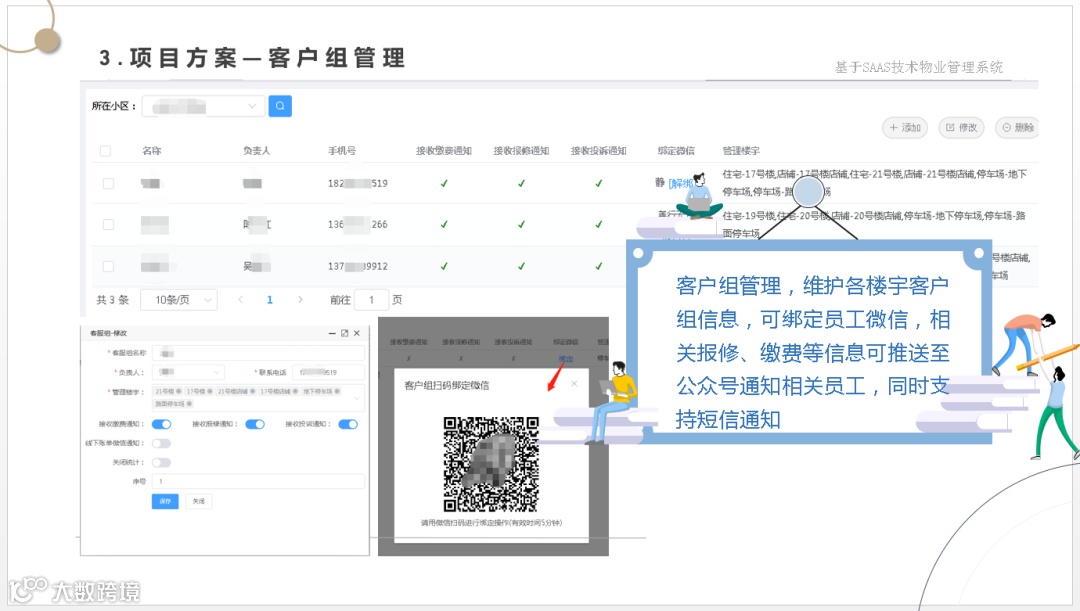 让管理方一套系统解决物业管理、财务管理、集成各种缴费方式、智能水电表系统、智能门锁系统、智能门禁系统、2轮、4轮电动车充电系统、停车管理系统、监控系统等软、硬件集成为一体的数字物业综合服务管理平台。