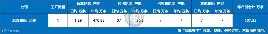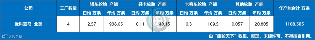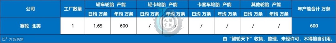 在北美有4家工厂;合计产能:1108.505万条/年;