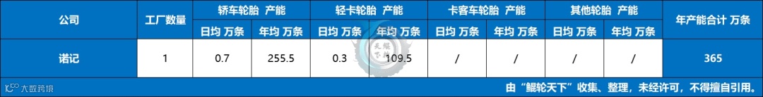 分别为:轿车胎547.5万条/年;轻卡胎:182.5万条/年;卡客车胎:54.75万条/年;其他轮胎:5.11万条/年。