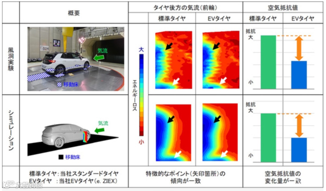 同时,住友橡胶研发AI模拟技术实现轮胎周围气流可视化,以降低轮胎周围风阻为目标,结合轮胎接地形变、轮胎转动空力、胎侧凹凸等,测试和研发新一代电动车用胎,新胎2027年发布。