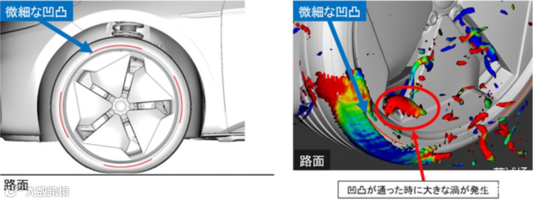新开发的“轮胎空气动力学模拟”是一种人工智能驱动的工具,可以让住友的工程师可视化轮胎周围的空气阻力。它使用实际车辆数据来计算旋转轮胎的空气动力学,同时模拟轮胎花纹并使用人工智能分析结果。