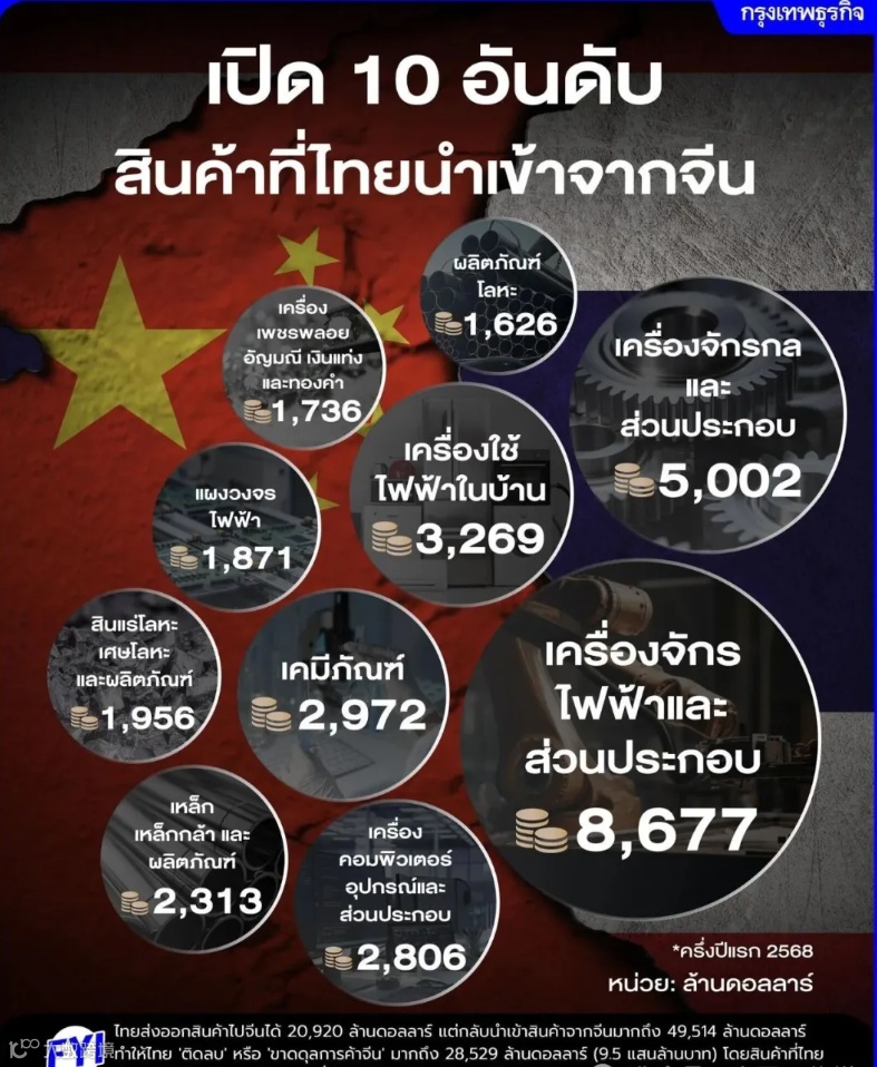 2025年上半年,泰中贸易逆差持续扩大,达到285.29亿美元,较去年同期显著增加约2200亿泰铢。尽管泰国对华出口表现强劲,同比增长18.8%,达到209.2亿美元,但自华进口规模更大,同比增长31.8%,高达495.14亿美元,导致逆差进一步加剧。
