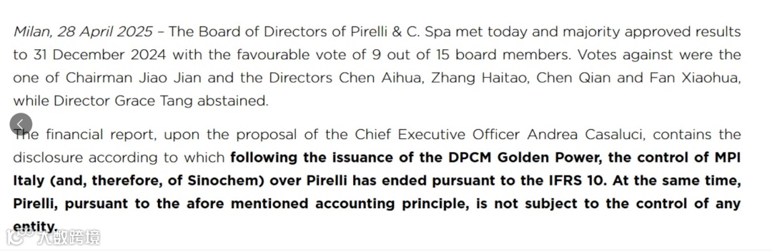 2025年4月28日,意大利轮胎巨头倍耐力在年报中正式宣布,其最大股东中国中化集团(持股37%)对公司的控制权已结束。这一决定源于意大利政府依据“黄金权力”法案的干预,认定中化集团通过子公司中国化工橡胶违反战略资产保护规定。