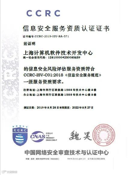 近日,上海计算机软件技术开发中心(以下简称“软件中心”)顺利通过信息安全风险评估服务一级资质监督审核。信息安全风险评估服务资质级别是衡量服务提供者服务能力的尺度,其中一级为最高级别。