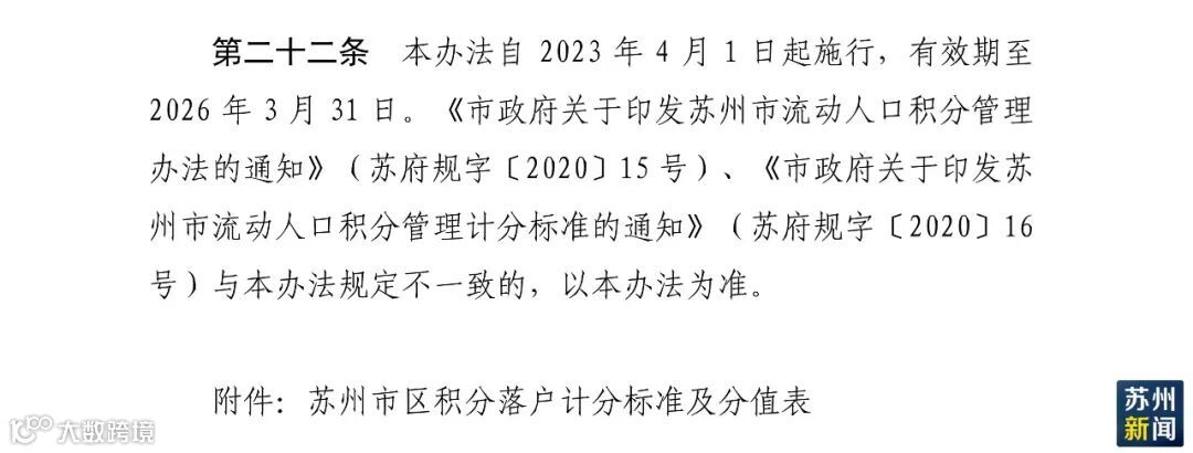 《苏州市区积分落户管理办法》印发!今年4月1日起施行