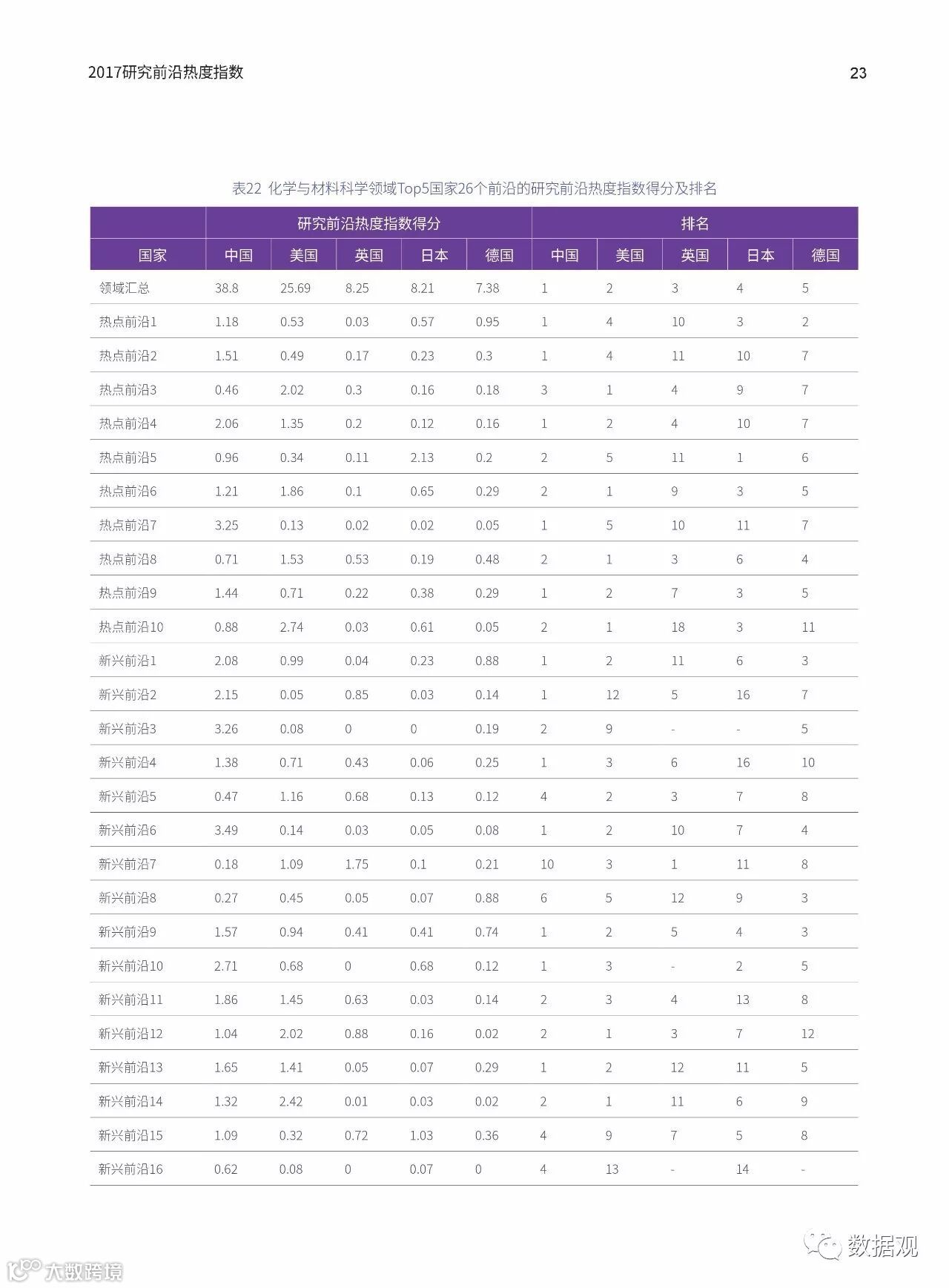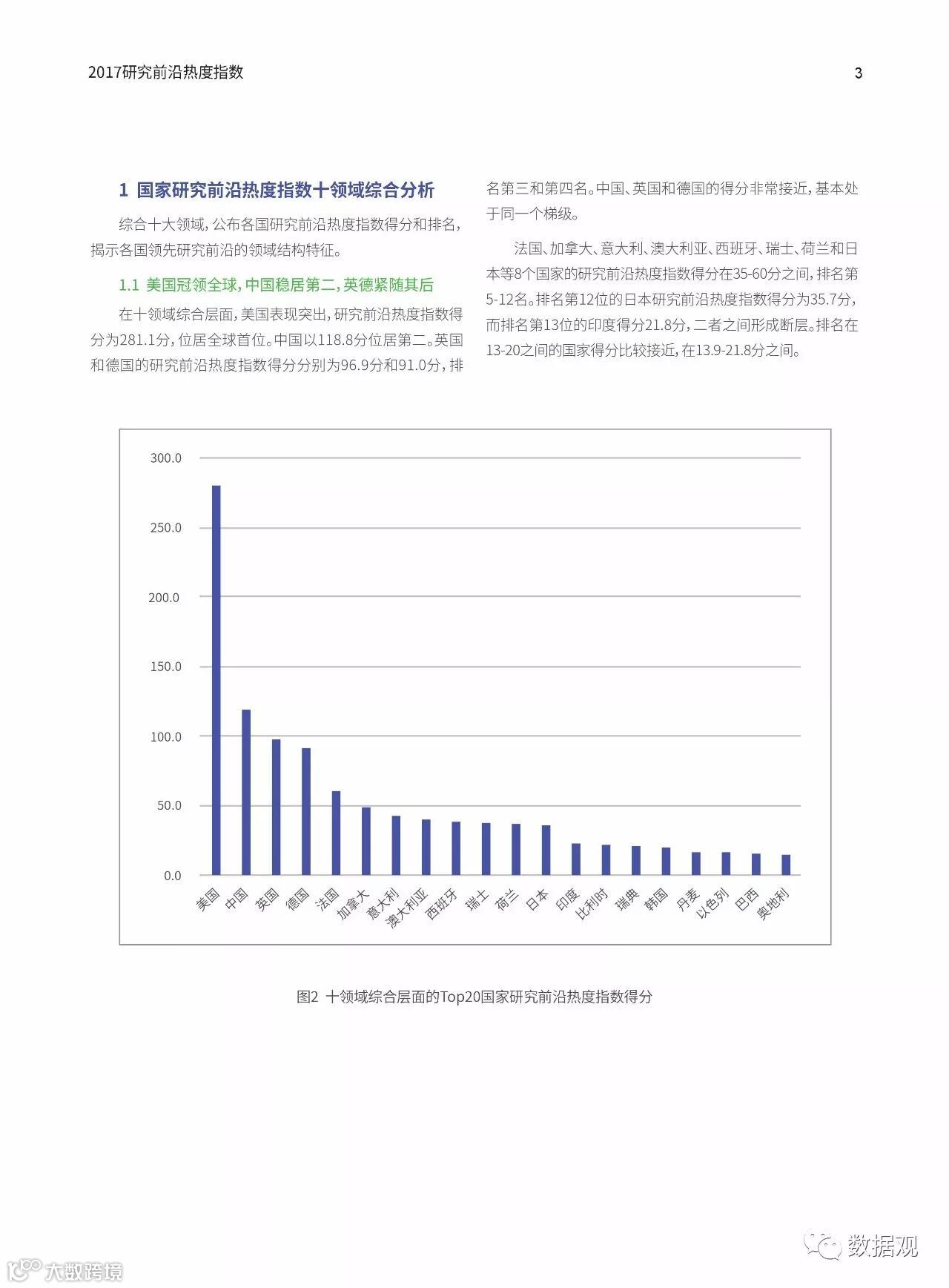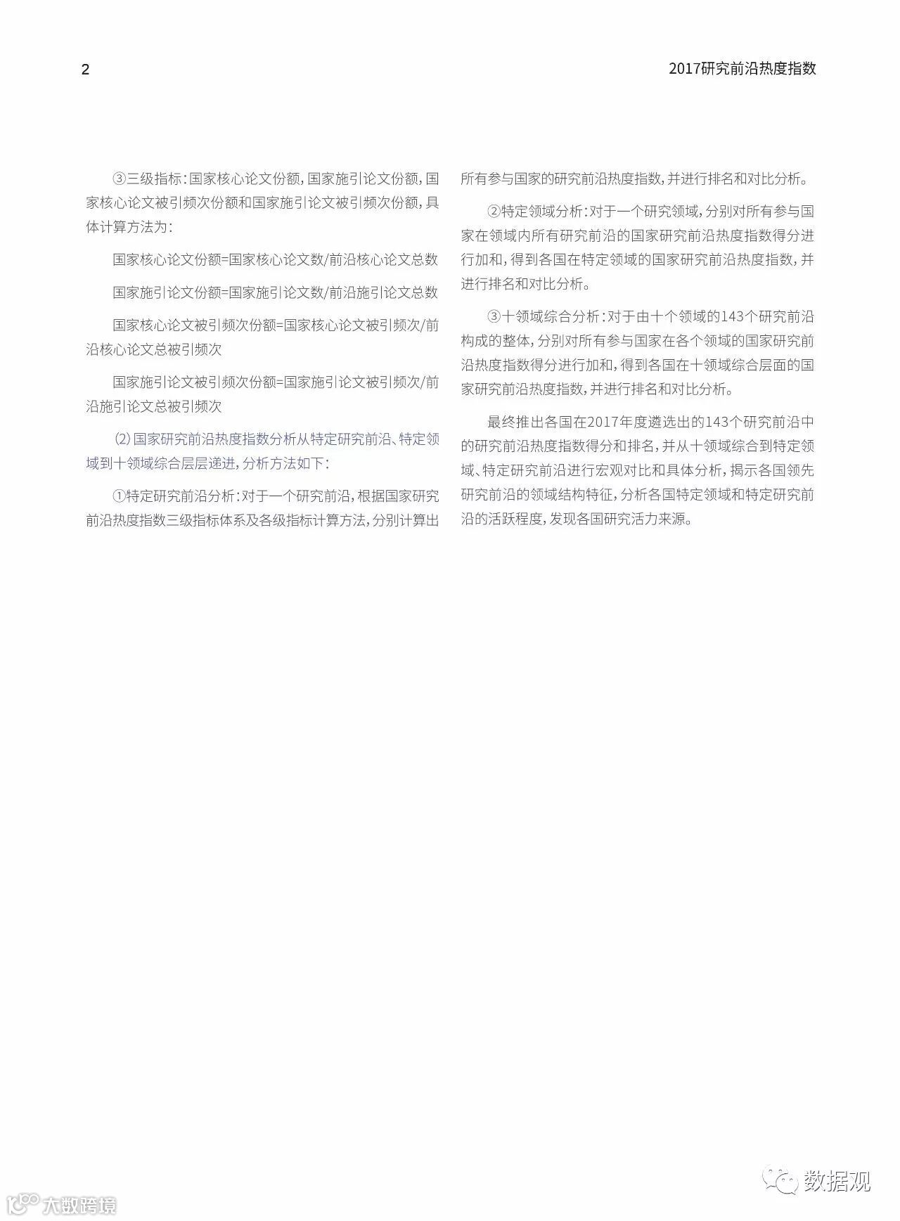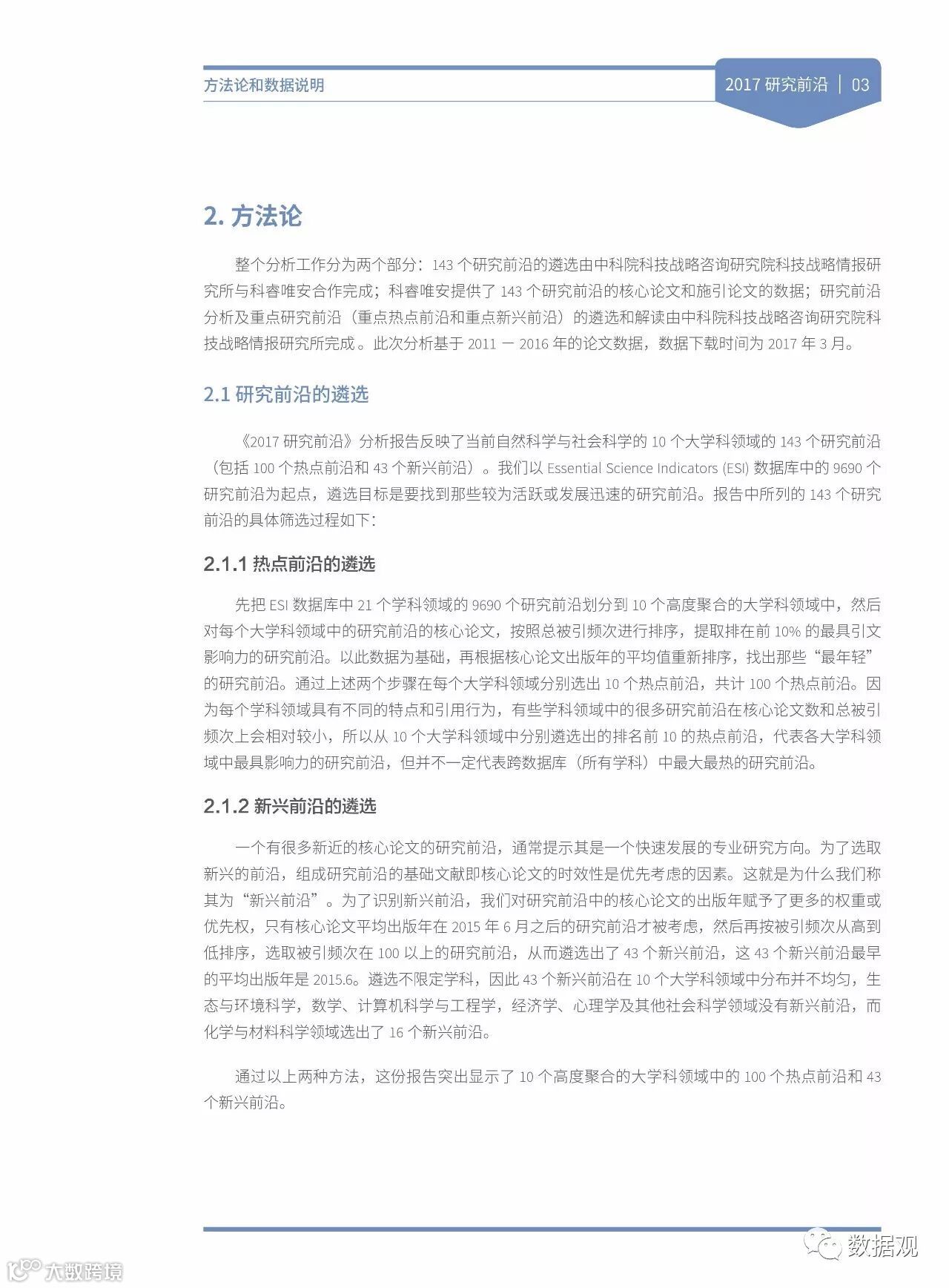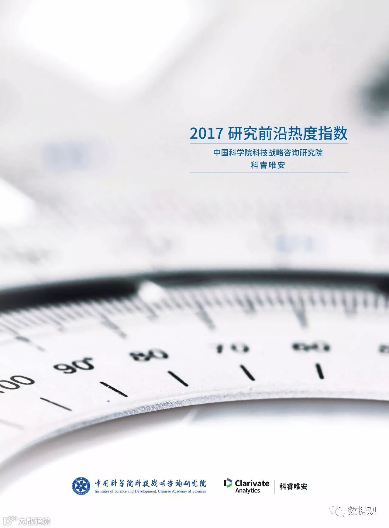 数据观获悉,11月2日,中国科学院科技战略咨询研究院、中科院文献情报中心与科睿唯安公司在北京向全球发布了《2017研究前沿》报告和《2017研究前沿热度指数》报告。(详情参看下方PPT全文)