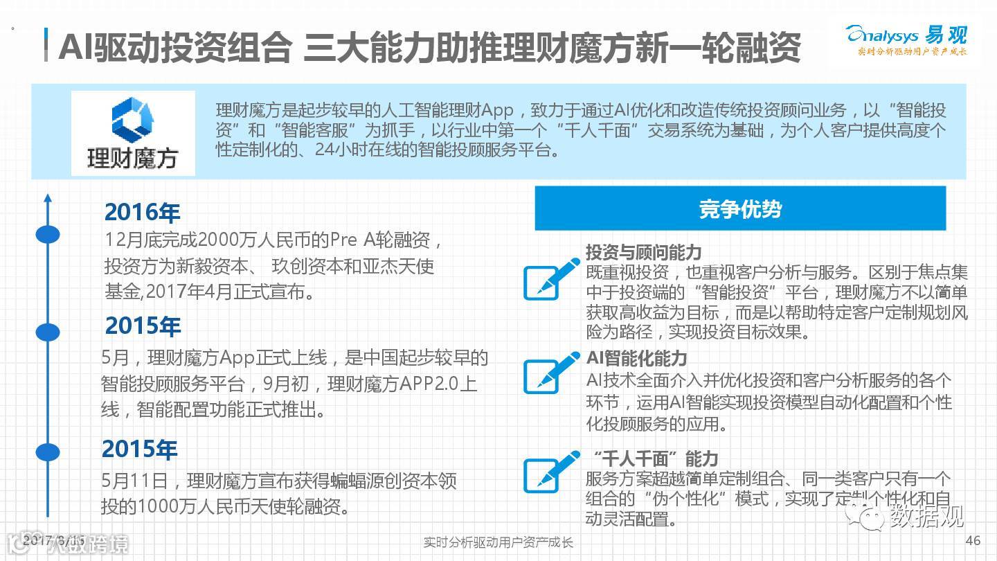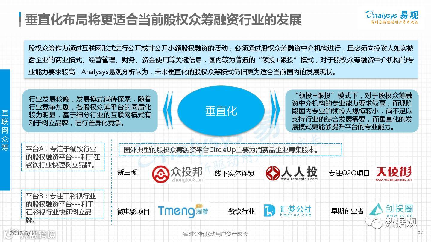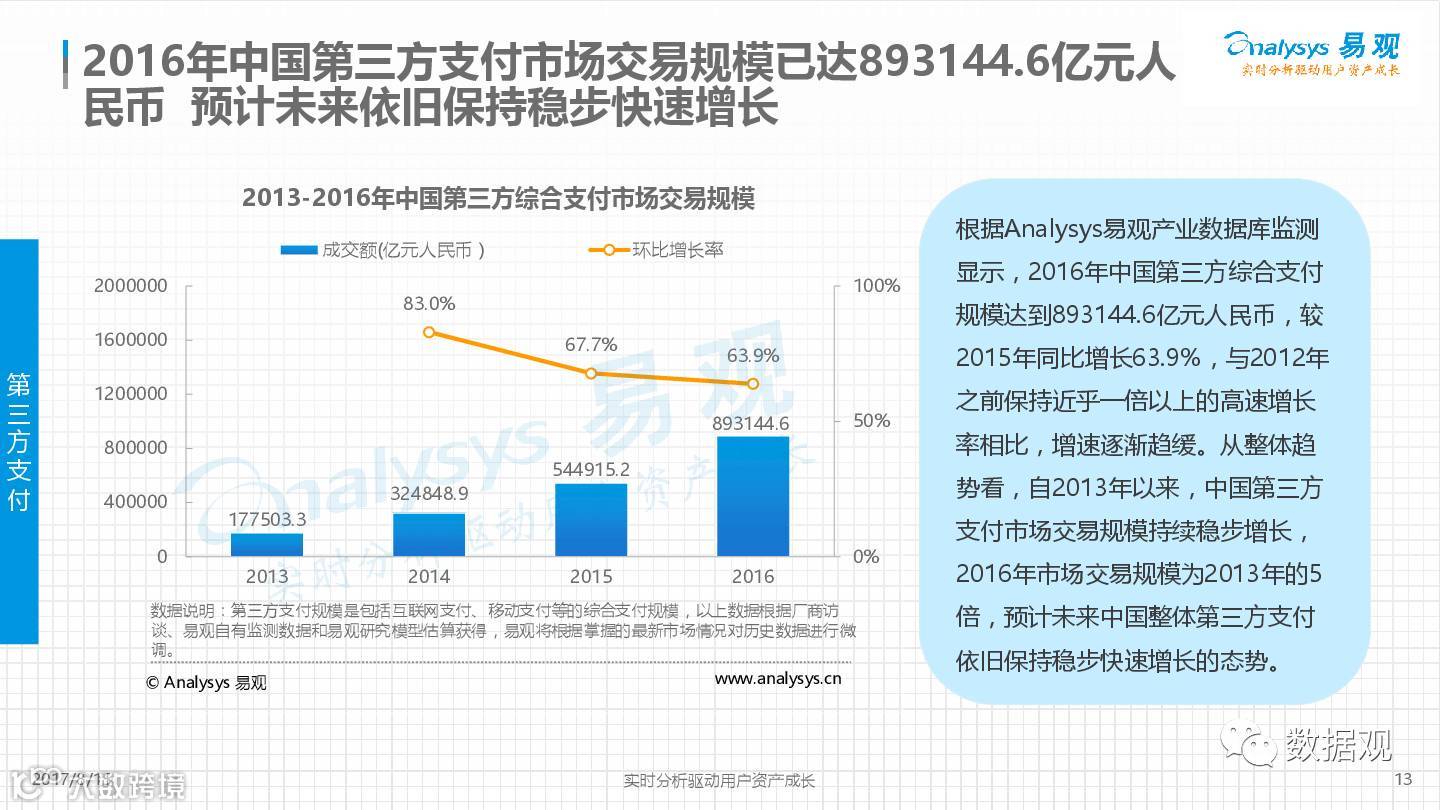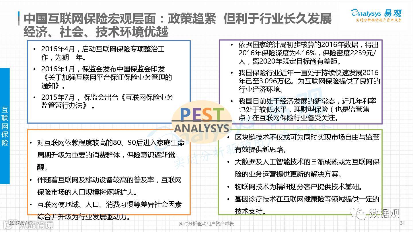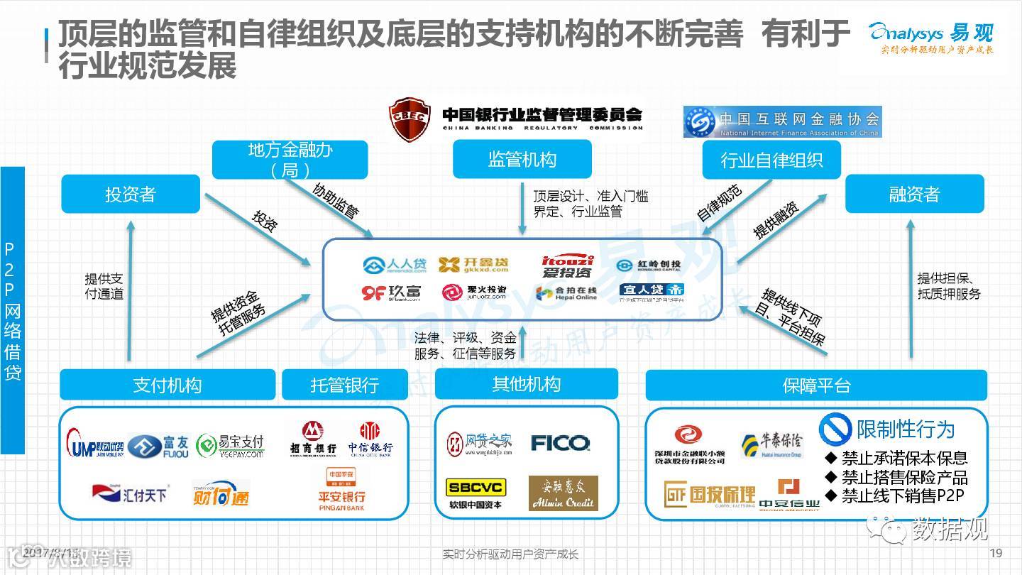 2017年8月,易观发布了《中国互联网金融行业专题分析2017》的专题研究报告。报告的分析内容主要针对《关于促进互联网金融健康发展的指导意见》对于互联网金融各类型的划分,包括第三方支付、网络借贷、互联网理财、互联网保险、股权众筹等。从互联网金融综合概述、细分市场、案例解读、未来趋势四个方面阐述了2016年互联网金融的发展现状及未来互联网金融的发展趋势。