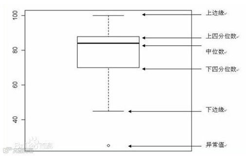 箱线图是一种常用数据分布图,下图表示了这种图中各元素的意义: