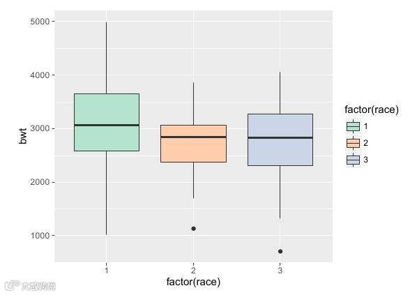通过stat_summary()函数,还可以在箱线图中标记均值点。R语言实现代码如下: