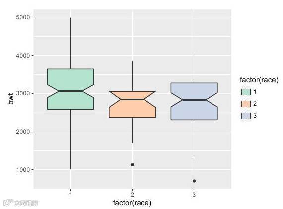 其中最常见的是为箱子添加槽口,它能更清晰的表示中位数的位置。R语言实现代码如下: