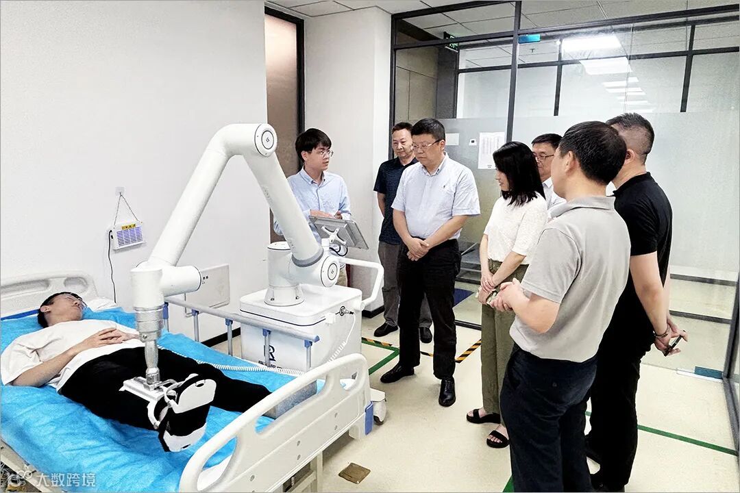 宋正董事长一行还考察了苏州康莲医疗技术有限公司。康莲医疗是行业内领先的智能康复设备供应商,公司依托先进的机器人技术、人工智能技术以及云计算服务,研发出国际领先的康复治疗机器人系统。通过机器人介入早期床旁康复治疗,实现了人机协作,优化了康复治疗流程,从而降低康复医疗机构人力成本,提高康复治疗效率。康莲医疗创始人张永安就智能康复/康养机器人项目进行详细介绍。宋正董事长现场体验后表示,人工智能技术的不断发展,让医疗服务走向了信息化、智能化,不仅让患者有了更好的康复体验,也有利于推动康复医疗服务水平的提升。公司在巩固现有医药业务发展的同时,也在围绕医药大健康领域积极拓展新的增长点。希望双方能进一步加强沟通,找到合适的切入点展开项目合作,共同探索康复产品的新技术、新模式,为康复医疗产业的高质量发展贡献力量。