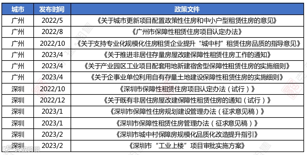 为加快推进和规范保障性租赁住房发展,广州、深圳围绕保障性租赁住房建设运营出台多项政策措施,细化非居住存量房屋改建、企事业单位利用自有存量土地建设、城中村房屋改造等不同筹建方式实施方案,强化政策保障,助推保障性租赁住房筹建加速。