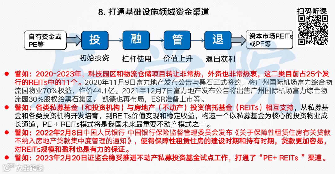 10. 项目(产业园区、仓储物流、标准厂房、保障性租赁住房、数据中心、城市停车场、旅游景区、长租公寓(非列入保障性租赁住房的)、商场、办公楼、酒店等)的“PE+REITs”机遇
