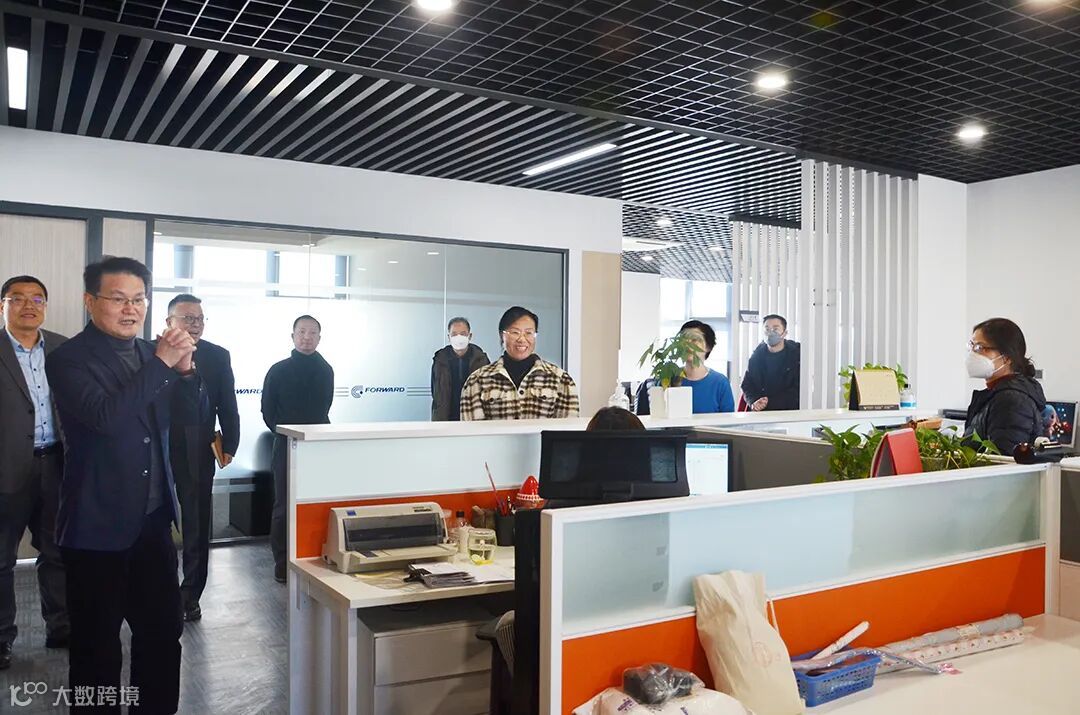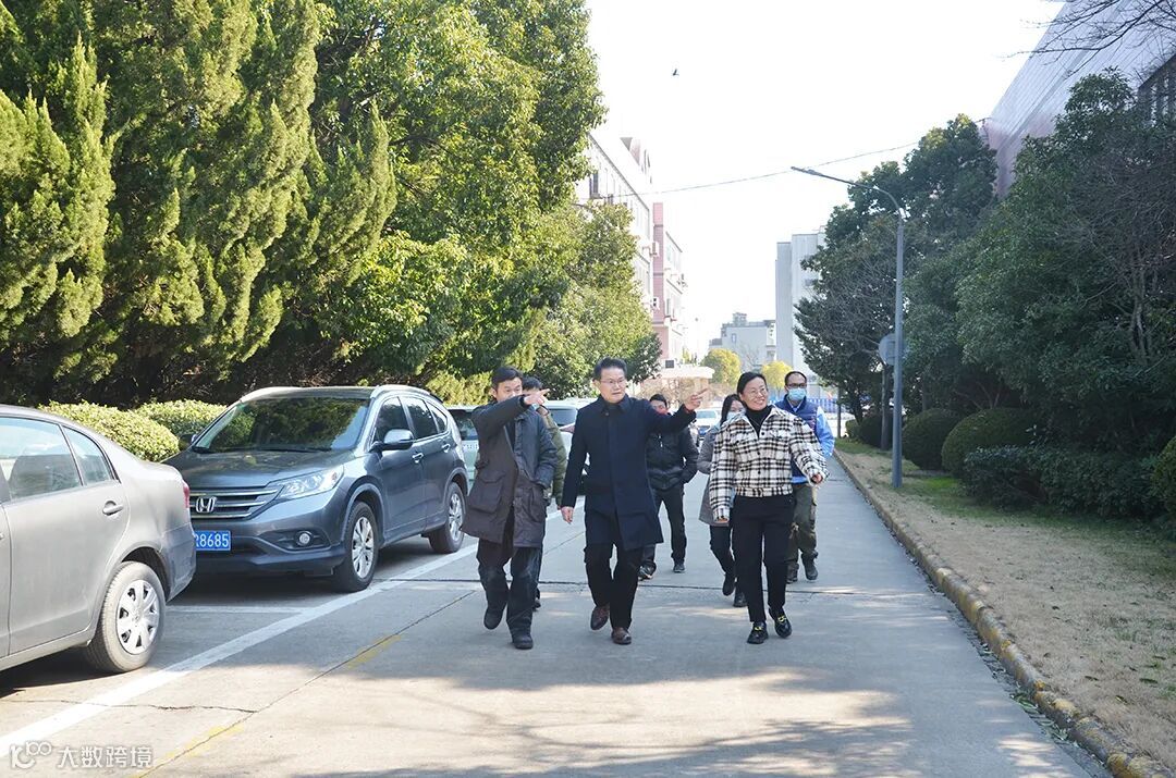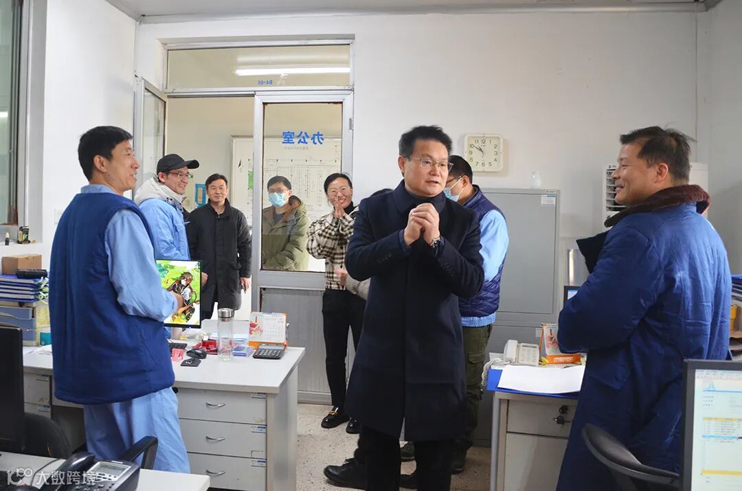 褚建平董事长一行来到办公区域,向园区公司员工拜年。在园区公司经营班子的陪同下,大家还参观了园区科创基地里正在装修中的新引进企业的办公场地。