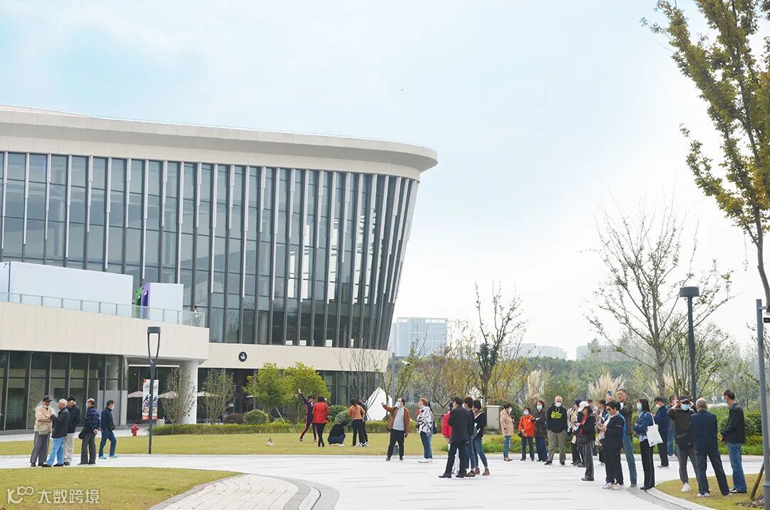 随后,大家前往九棵树未来艺术中心。坐车环绕这座奉贤著名的文化地标后,大家下车来到广场上,近距离欣赏大气优雅的建筑外观,以及北门前的九棵银杏树,感受这里独特的文化艺术气息。