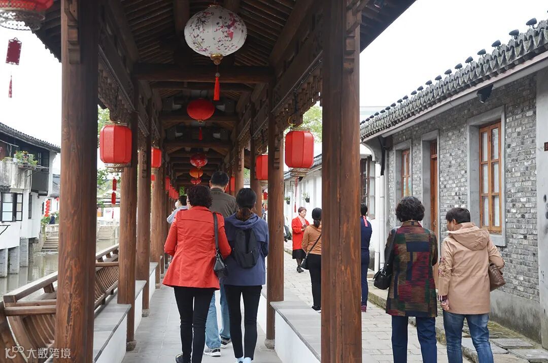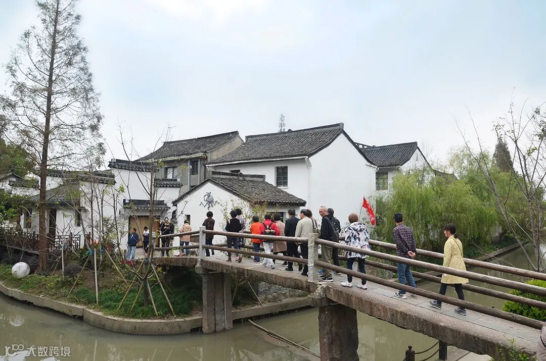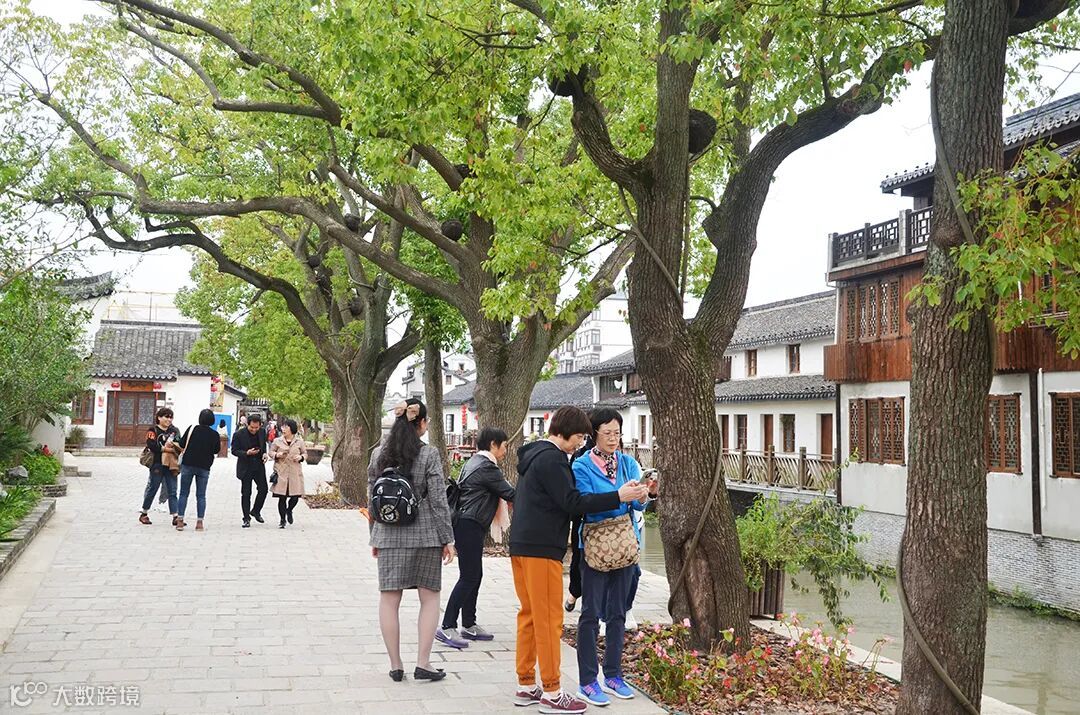 下午的目的地是位于青村镇的青溪老街。青村,隋末唐初成陆,宋初成村,曾经相当繁华。现存的青溪老街经过修旧如旧的修复和改造,于今年5月开街。老街长约1000多米,呈河街相邻的格局。白墙黛瓦,曲廊窄巷,石桥卧波,散发着静谧古朴的美。河岸边保留了多处历史文化古迹,而民居中仍有当地居民居住,令老街洋溢着烟火气。退休员工们纷纷拿出手机、相机,在望海楼前、古石桥上、小河边取景,留住老街安逸宁静的模样。