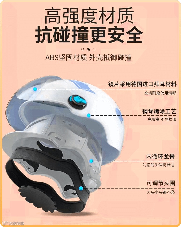 2. 选择头盔时要选择和自己头型大小相当的头盔,太大太小都不能起到有效的保护作用。