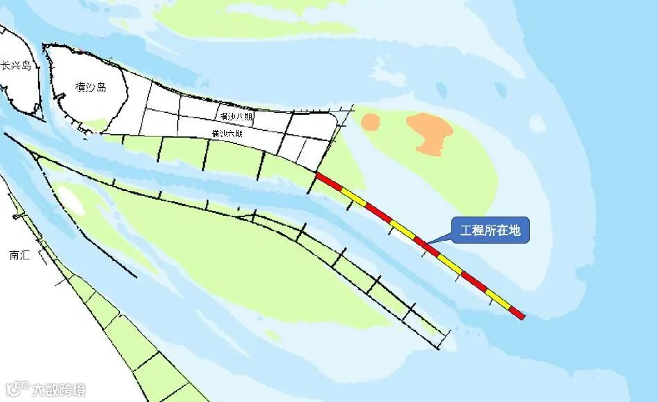 新建横沙大道大堤外延工程全长26.02千米,配套建设导助航工程、安全平台、砂库等。本工程等别为Ⅲ等工程,主要建筑物级别为3级水工建筑物;横沙大道防潮标准取2级建筑物下限;防洪标准按50年一遇高潮位叠加50年一遇风速设计。
