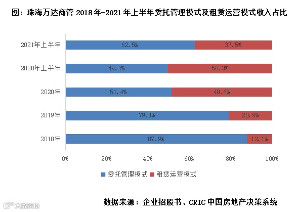 撤A回港,仅7个月实现轻资产业务重组上市。2021年3月24日,万达集团发布公告,宣布撤回大连万达商管A股IPO申请,同时宣布对公司从事轻资产商业运营、科技、数据、人员等相关资源进行重组,以尽快实现境内外上市。短短几天后的3月29日,大连万达商管集团与珠海市政府签署协议,将重组后的万达轻资产商管公司落户珠海横琴,同时珠海国资委出资30亿战投入股万达轻资产商管公司。10月21日,重组后的珠海万达商业管理集团股份有限公司正式递交招股书,申请港股上市,仅7个月的时间,万达便按照企业3月提出的愿景,实现了拆分重组境外上市。重组后的珠海万达商管为大连万达商管的控股子公司,将全面负责全国380个商业广场的管理业务,总在管建筑面积达5420万平方米,另外截止至上半年,珠海万达商管仍有162个储备项目,包括133个独立第三方项目。2018年、2019年及2020年,珠海万达商管在管商业广场 (不包括停车位)平均出租率为98.8%,处于行业前列。