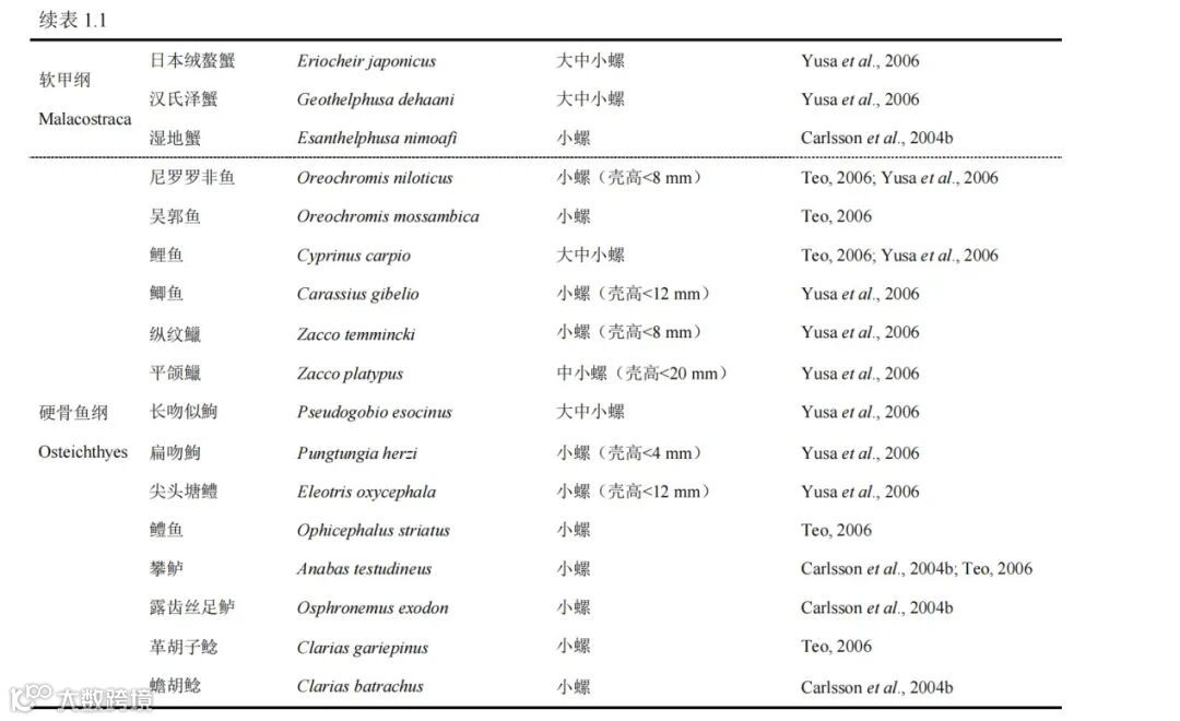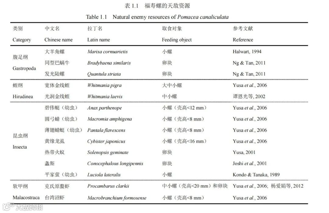 表2 福寿螺天敌资源统计表