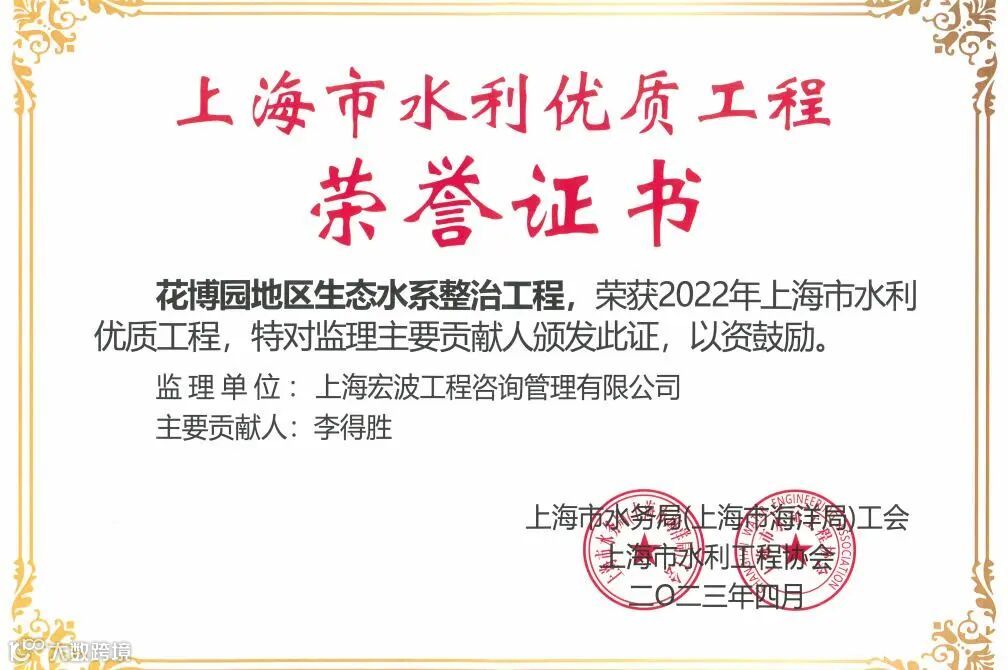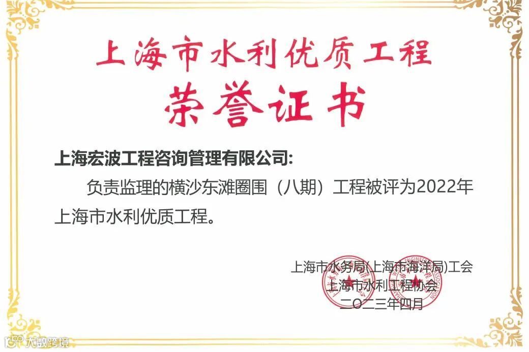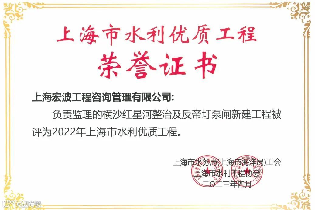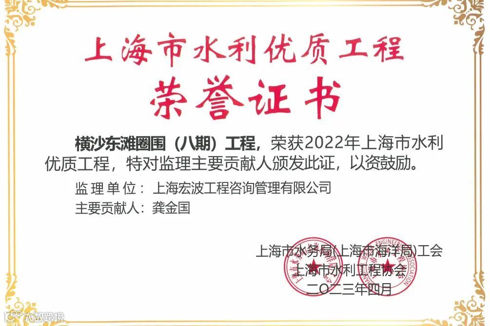 近日,上海市水务局(上海市海洋局)工会、上海市水利工程协会联合发布《关于表扬2022年上海市水利工程建设劳动竞赛结果的通报》,横沙东滩圈围(八期)工程、横沙红星河整治及反帝圩泵闸新建工程、花博园地区生态水系整治工程、松江区五厍港泵闸工程四项工程被评为“2022年上海市水利优质工程”。龚金国、韦正峰、晏井飞、李得胜、史小强五位同志获评项目主要贡献人荣誉。